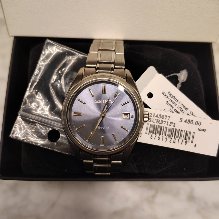Seiko men's watch. Titanium case and bracelet. Sapphire crystal. Model SUR371. Quartz movement. Pre-owned.