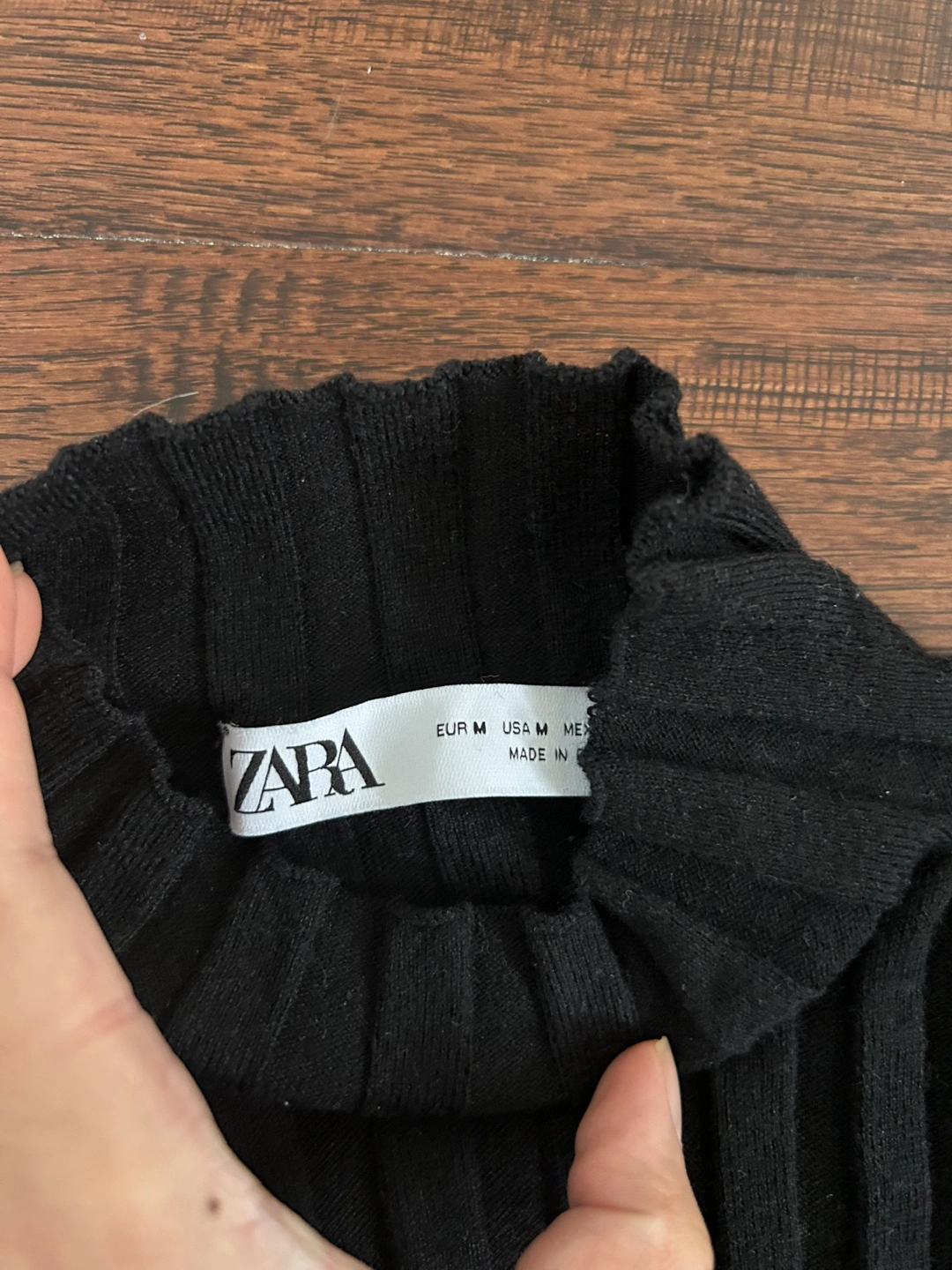 Zara Black Ribbed Knit Mock Neck Cropped Long Sleeve