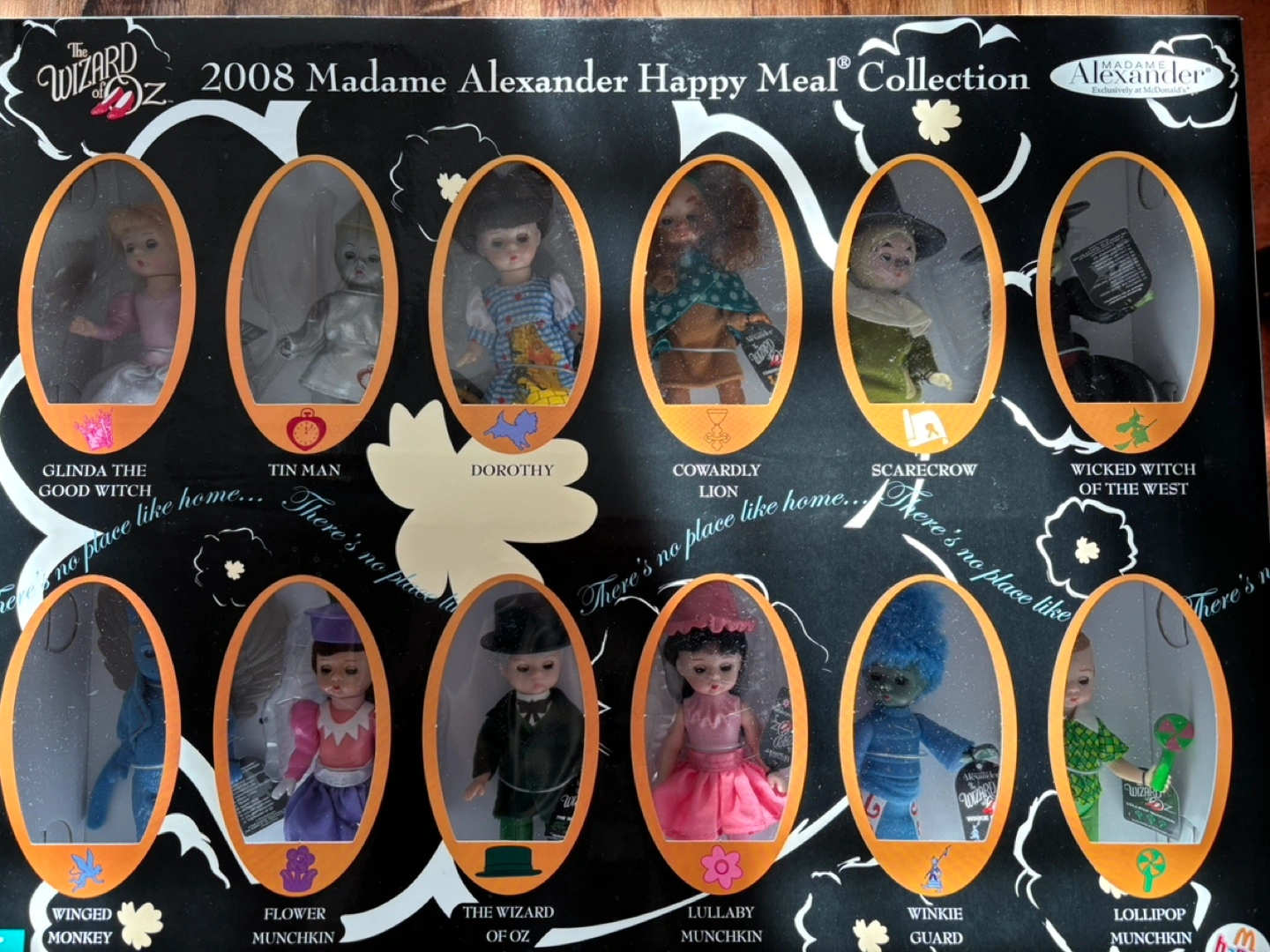 New in Box. Mint condition. Complete set of 12 Madame Alexander dolls from McDonald's 2008 Happy Meal promotion. Wizard of Oz theme. Collectible dolls in original packaging. Limited edition certificate included.