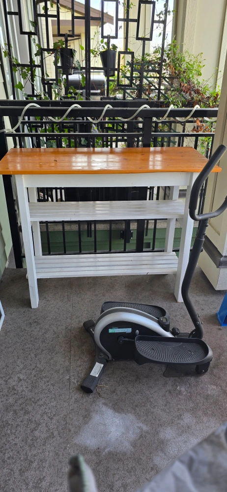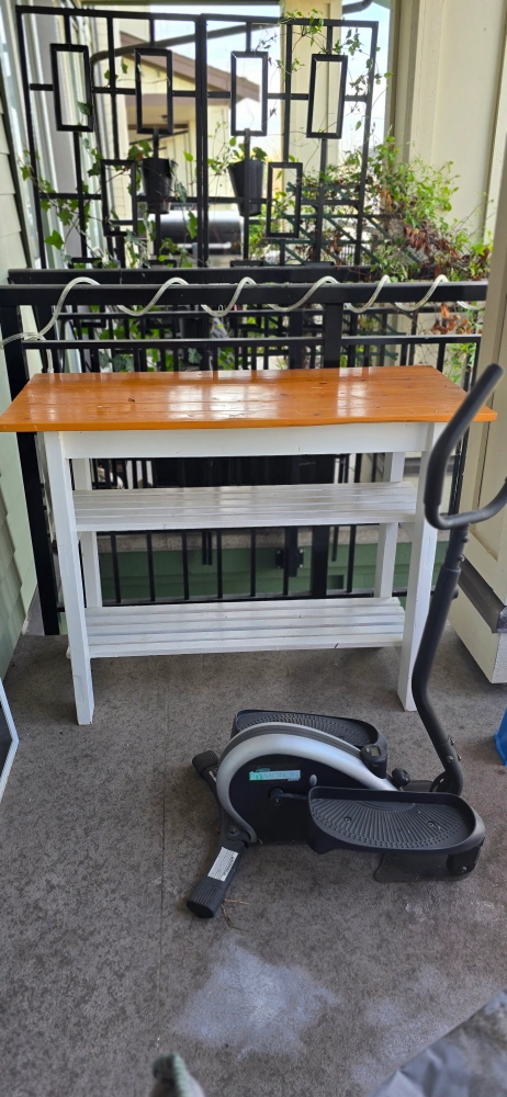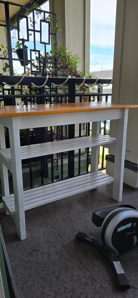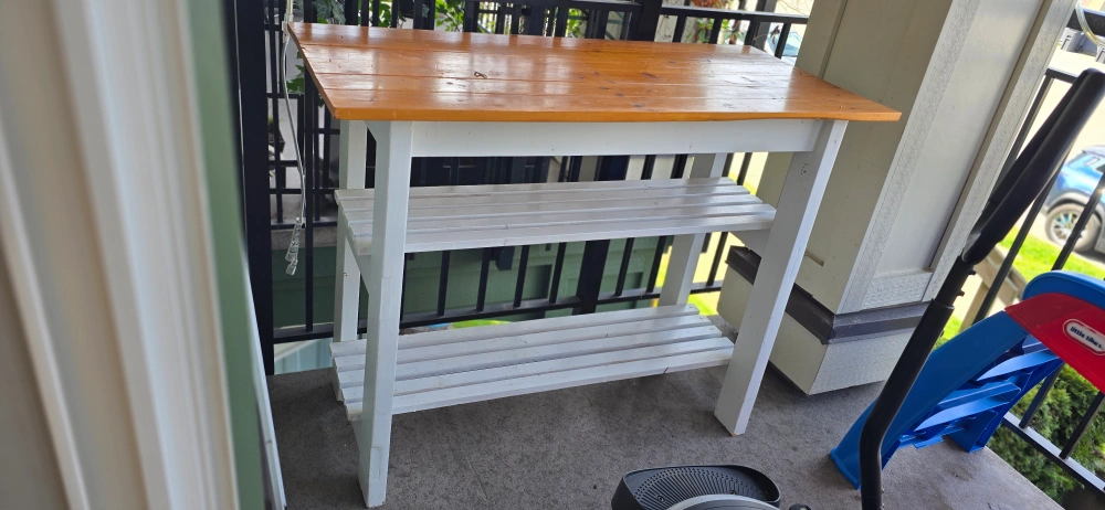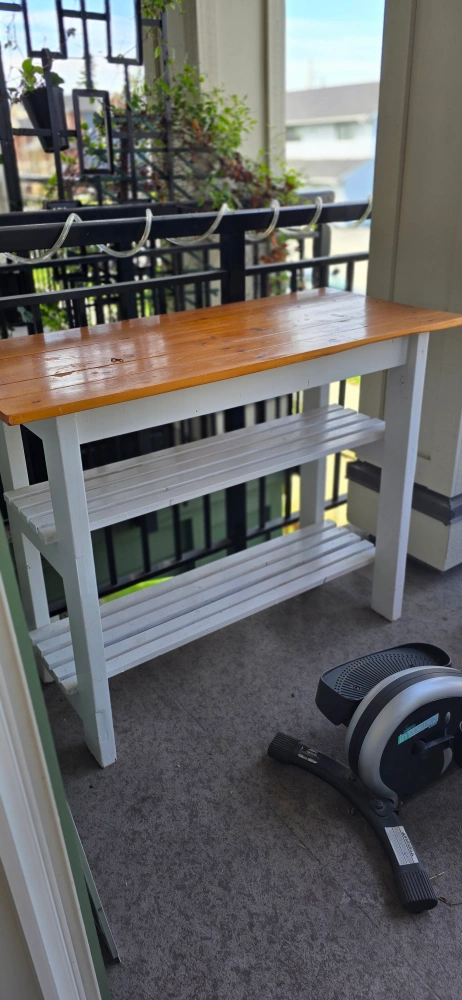 Rustic Wooden Console Table with Two Shelves - White and stained pine console table. Two shelves. Great for entryway or small space. Good condition. H - 34.8 × W -45.4