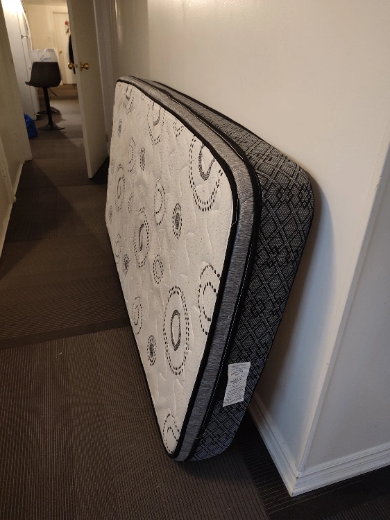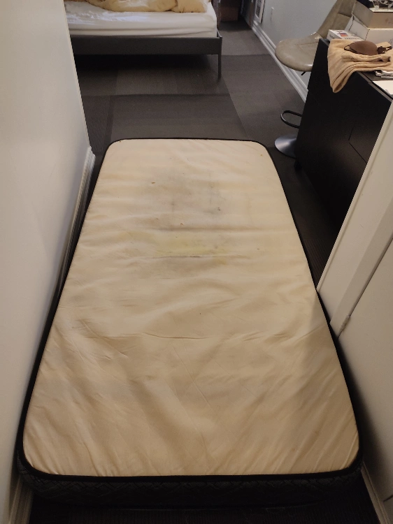 Twin mattress for free. Shows some stains. Used condition. Black and grey patterned fabric. Very soft. Pickup only near Dupont and Lansdowne intersection