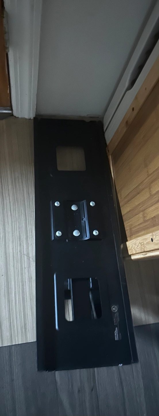 748Black metal TV wall mount bracket. Features mounting holes and a secure design. Used, but in good condition. I don’t have any screws or anything like that you would need to buy it