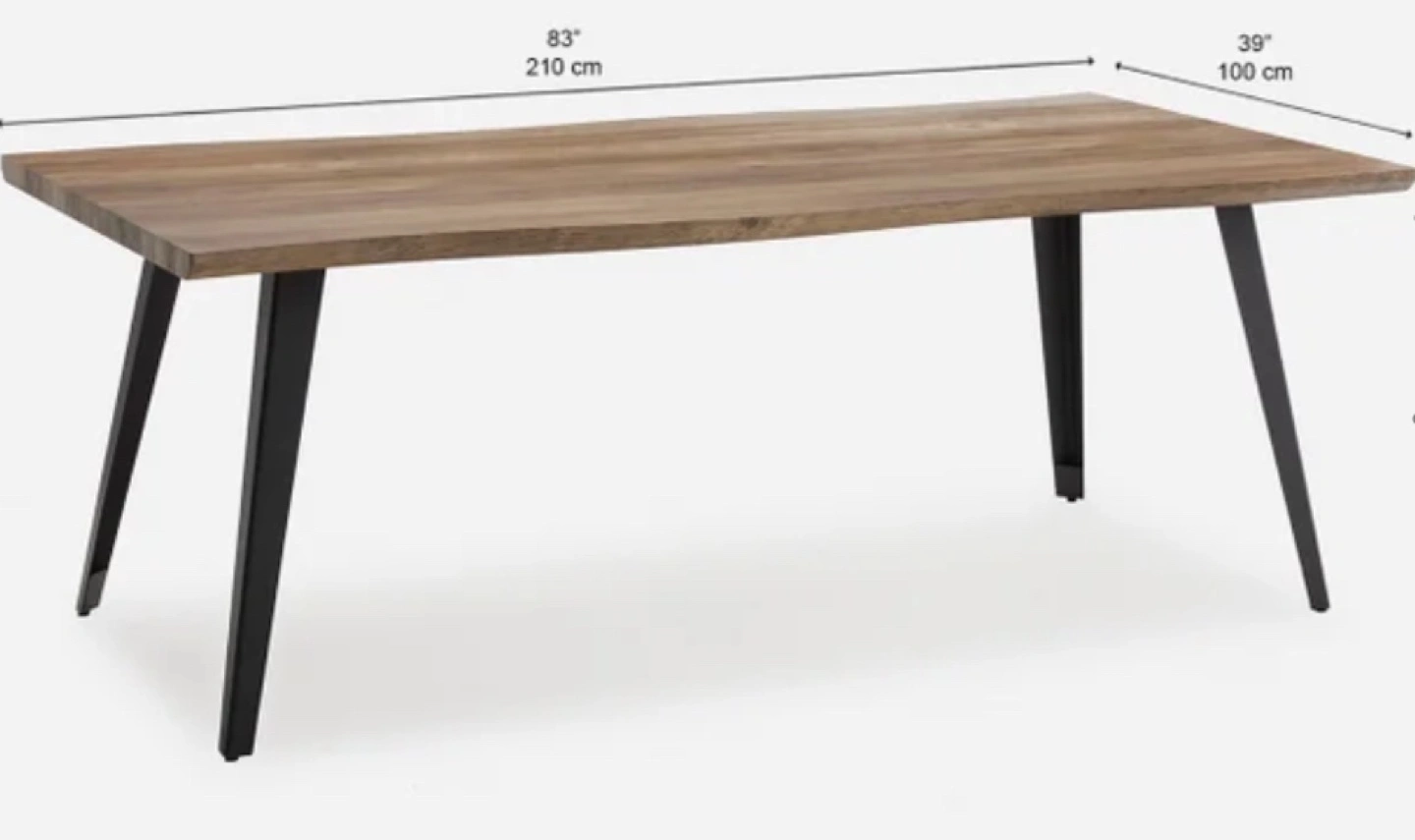Modern dining table. Features a live edge wood top and black metal legs. Classy and modern look. Excellent for a contemporary space. I love this table, I am selling only because I am moving out and my new place won’t fit this table