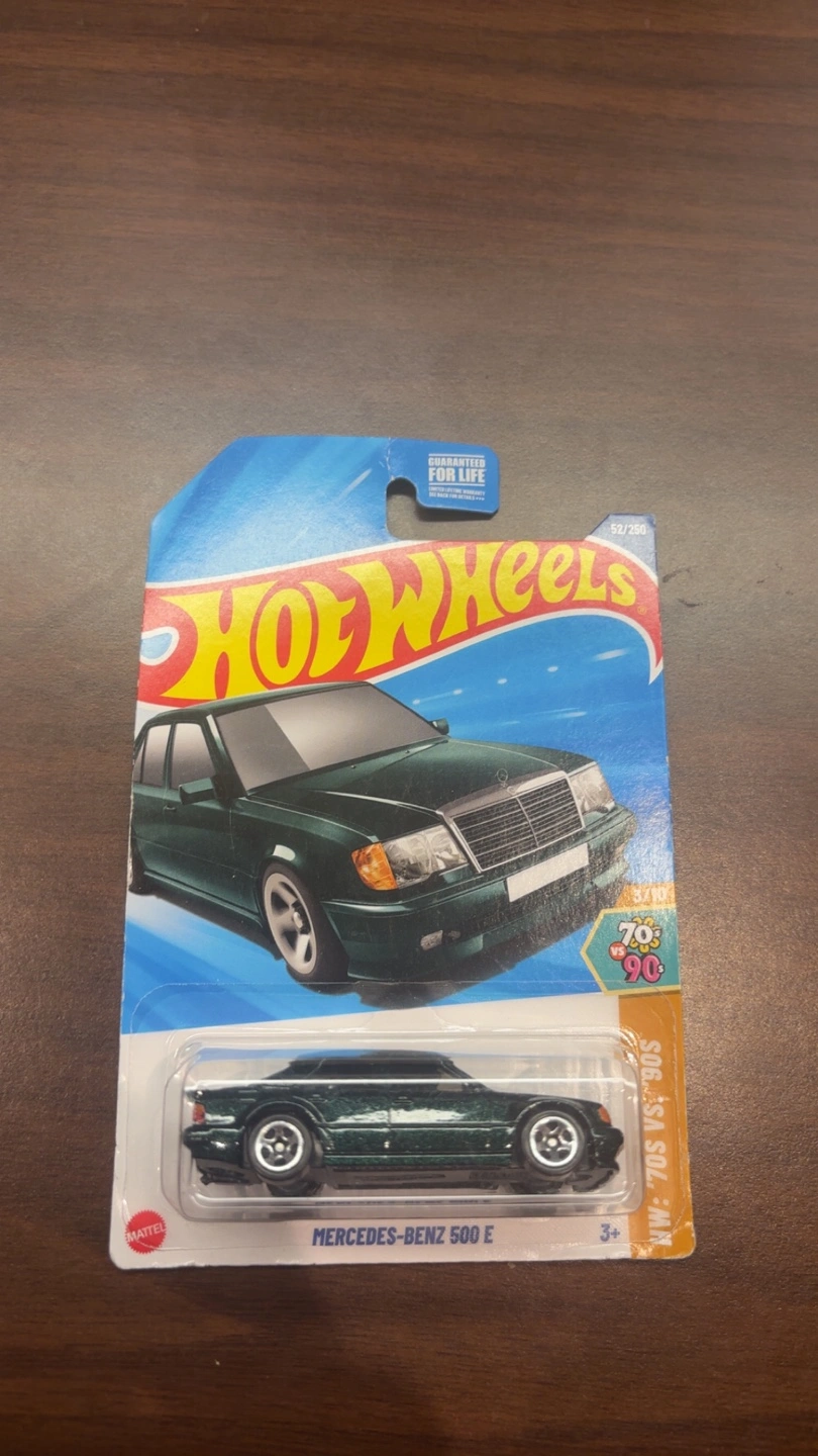 Hot Wheels Mercedes-Benz 500 E collectible car. Dark green. Part of the '70s vs '90s series. Number 52/250.