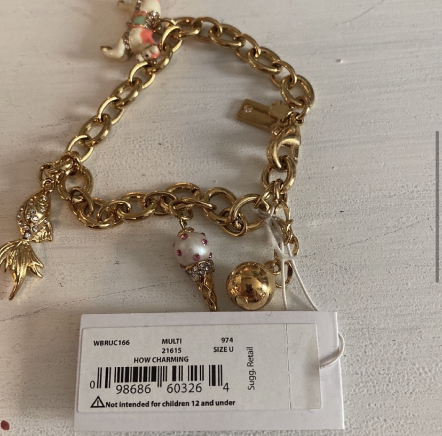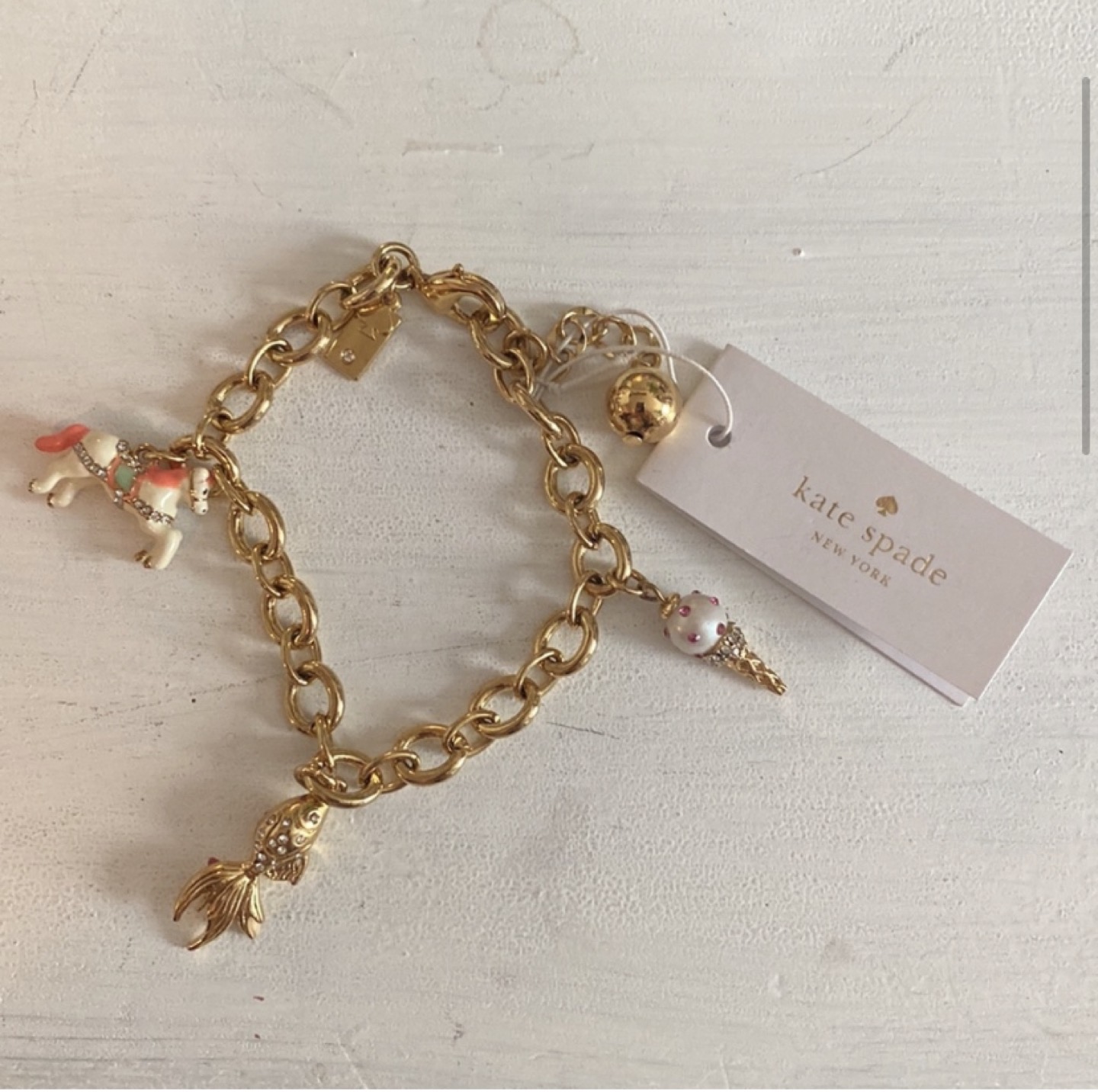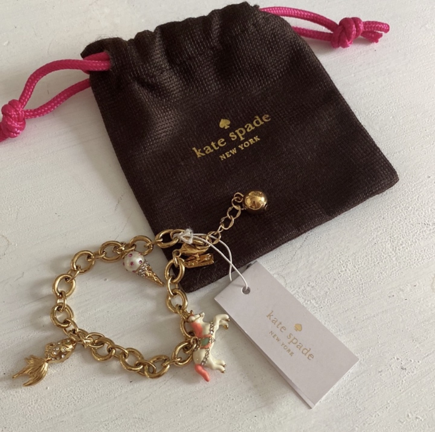 197BRAND NEW / PERFECT CONDITION comes in original jewellery pouch (perfect for gift) Beautiful, playful and dainty “Charming” charm bracelet with 3 charms + iconic KATE SPADE logo charm with room for additions. RARE and no longer sold in stores or online. Retailed for $86