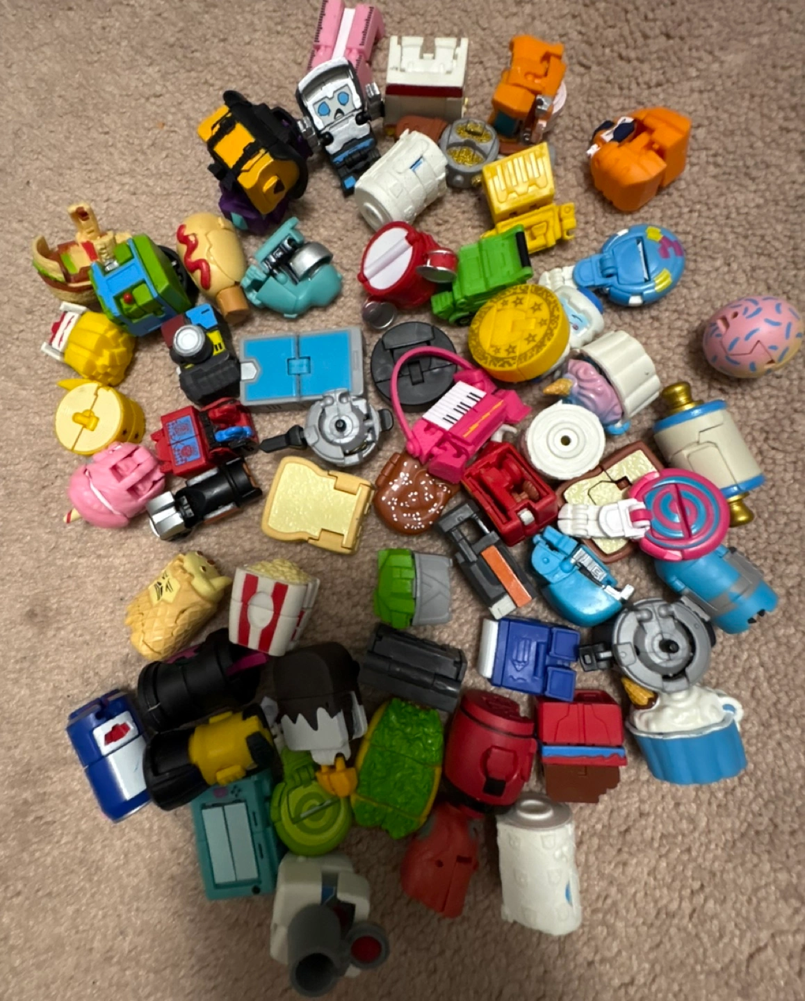 61 Transformers BotBots A couple of duplicates but mostly all of them are unique Almost all of them have their parts but a couple may be missing a part In good condition overall