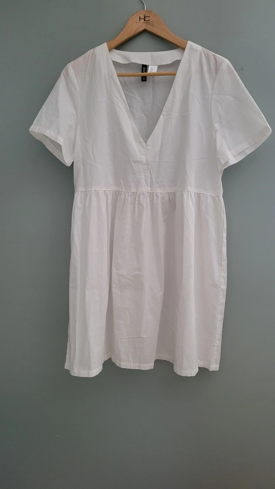 Short sleeve, V-neck, babydoll style. Flowy and casual. Perfect for summer.