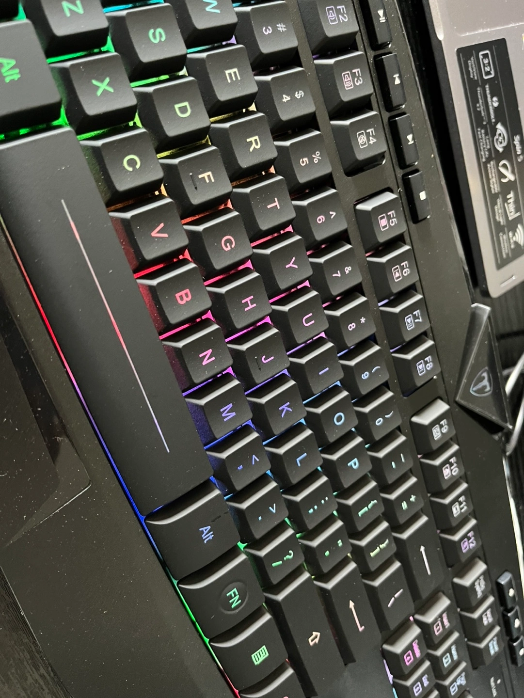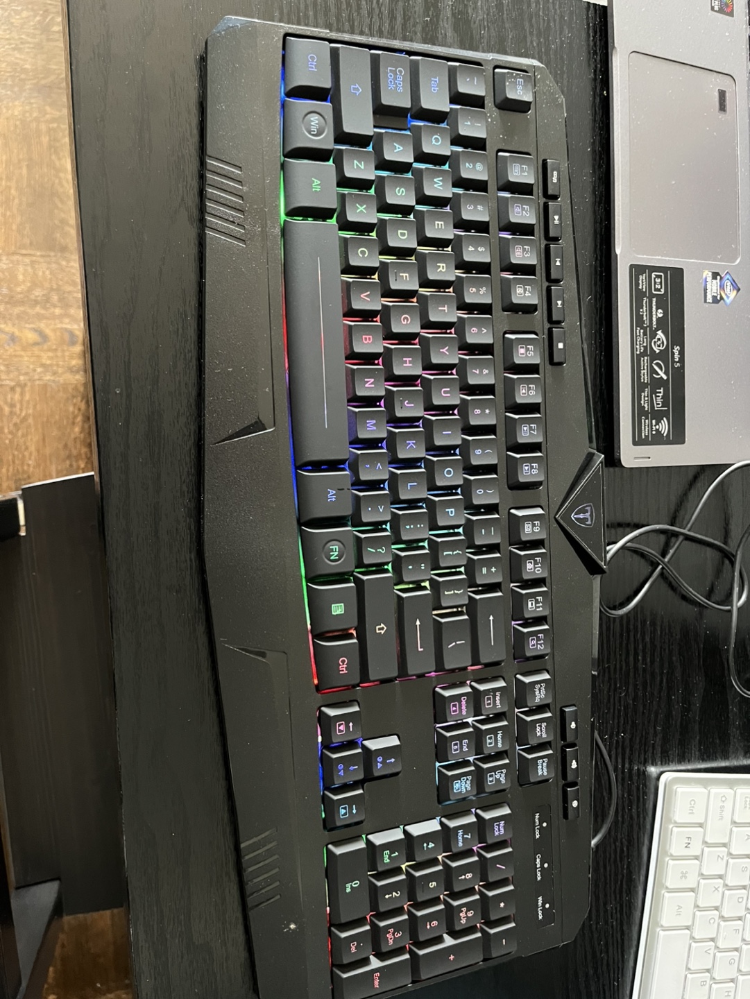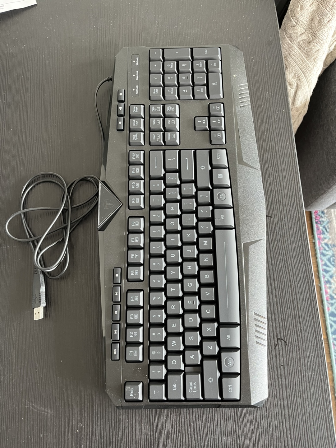 Wired keyboard. Black with RGB lighting. USB connection. Model AC22A. Includes cable. Brand new.