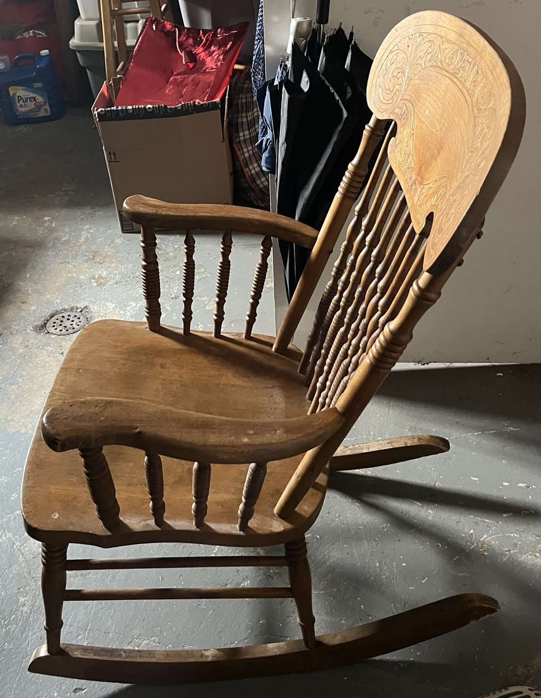 Buy & SellAntique Wooden Rocking ChairAntique Wooden Rocking Chair$40Vintage rocking chair. Intricate carved details. Solid wood construction. Great addition to any home.WHERE TO MEETLeasideView MapSELLERverifiedRobinLeaside Bennington41129 reviews4 chats·3 favorites·194 viewsSEND CHAT TO SELLERHi Robin! I’m interested in your listing.Hi Robin! I’m interested in your listing.Get the Karrot app to chatSign In to chat