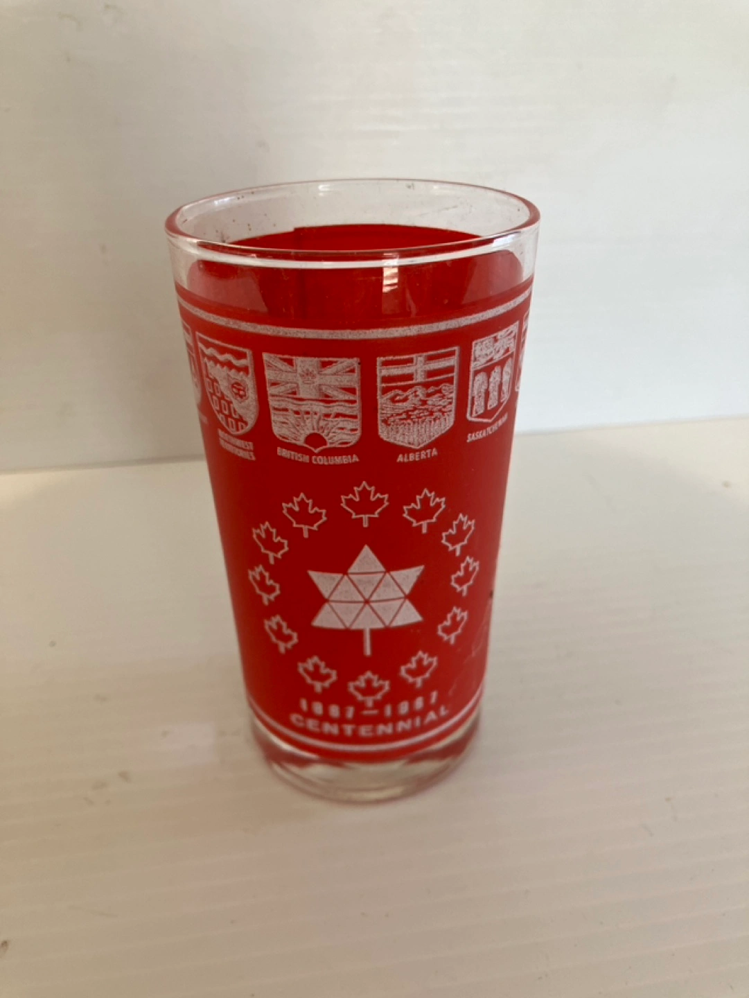 Classic 1867-1967 Canada Centennial Red Drinking Glass Circa 1967