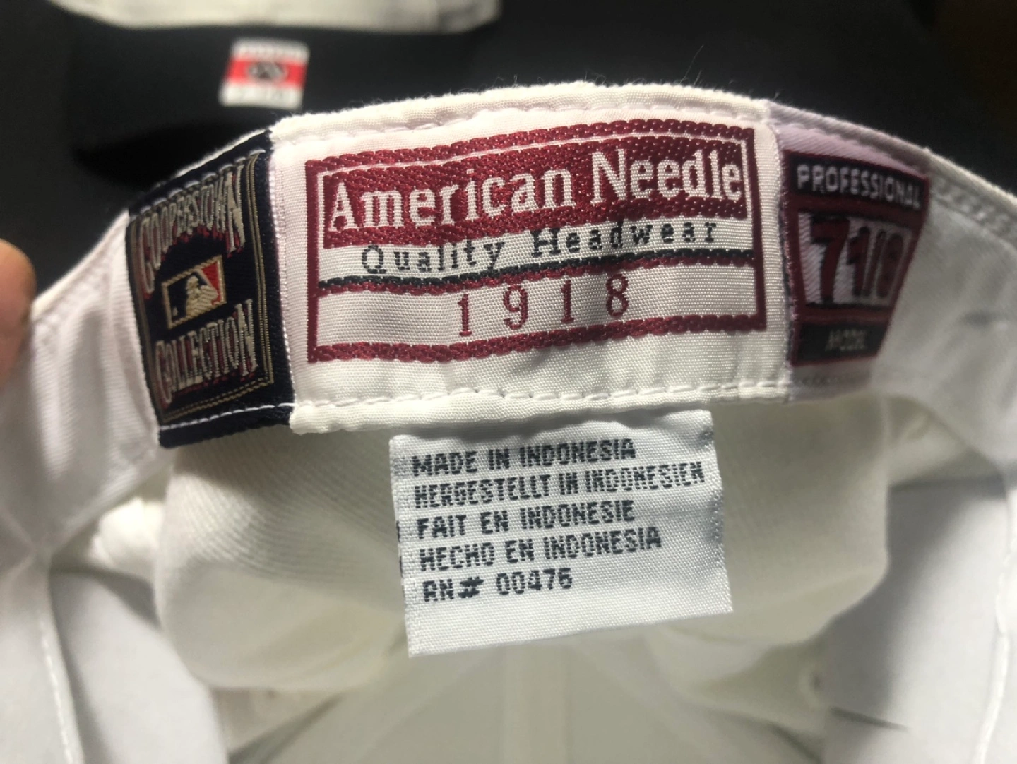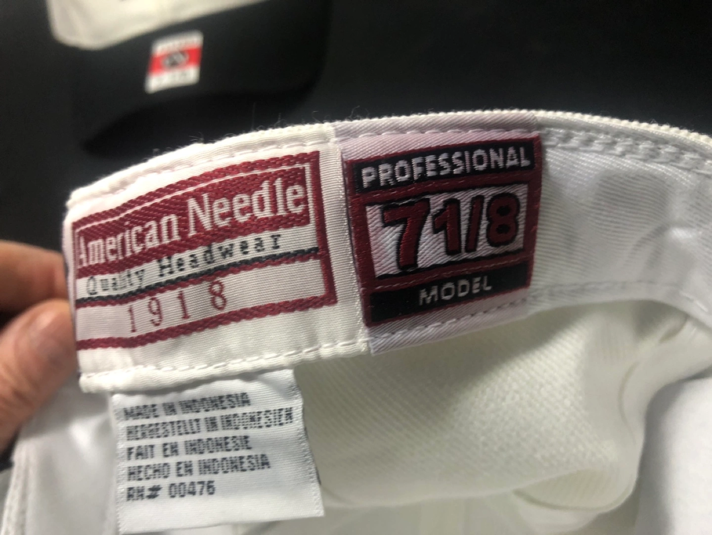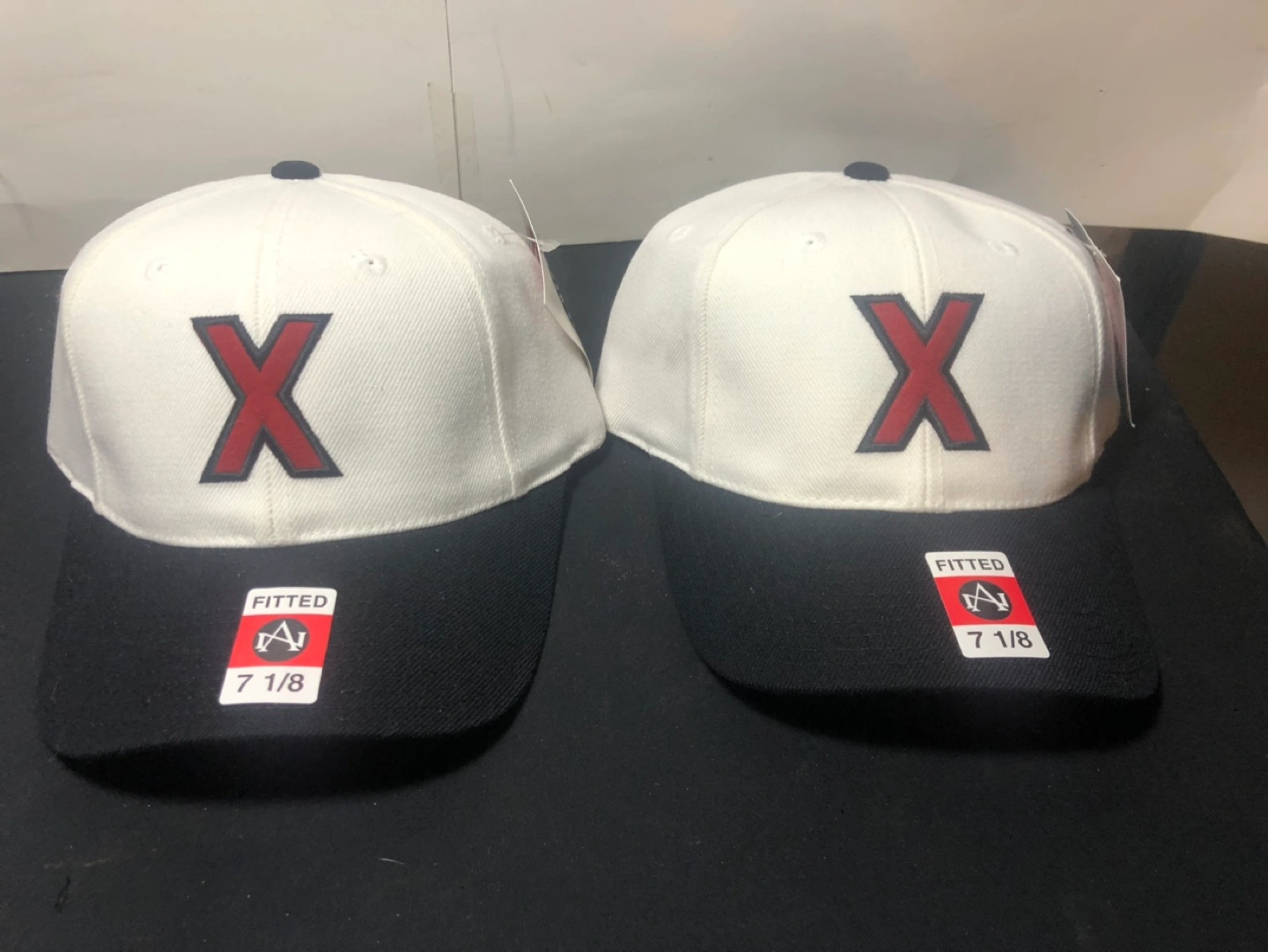 Two white and black fitted hats. Size 7 1/8. Large red X on front. New with tags. Cooperstown Collection.