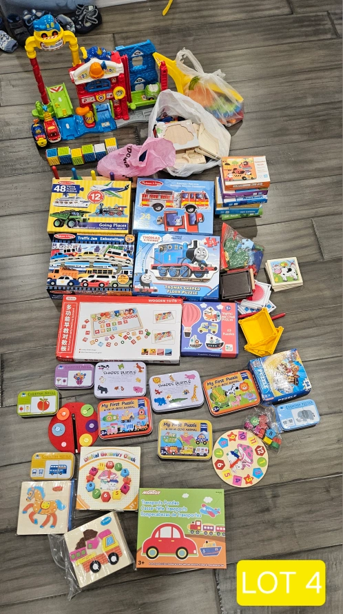 Large collection of children's toys and puzzles. Includes Melissa & Doug, Thomas & Friends, and other brands. Variety of themes and skill levels. Excellent condition.