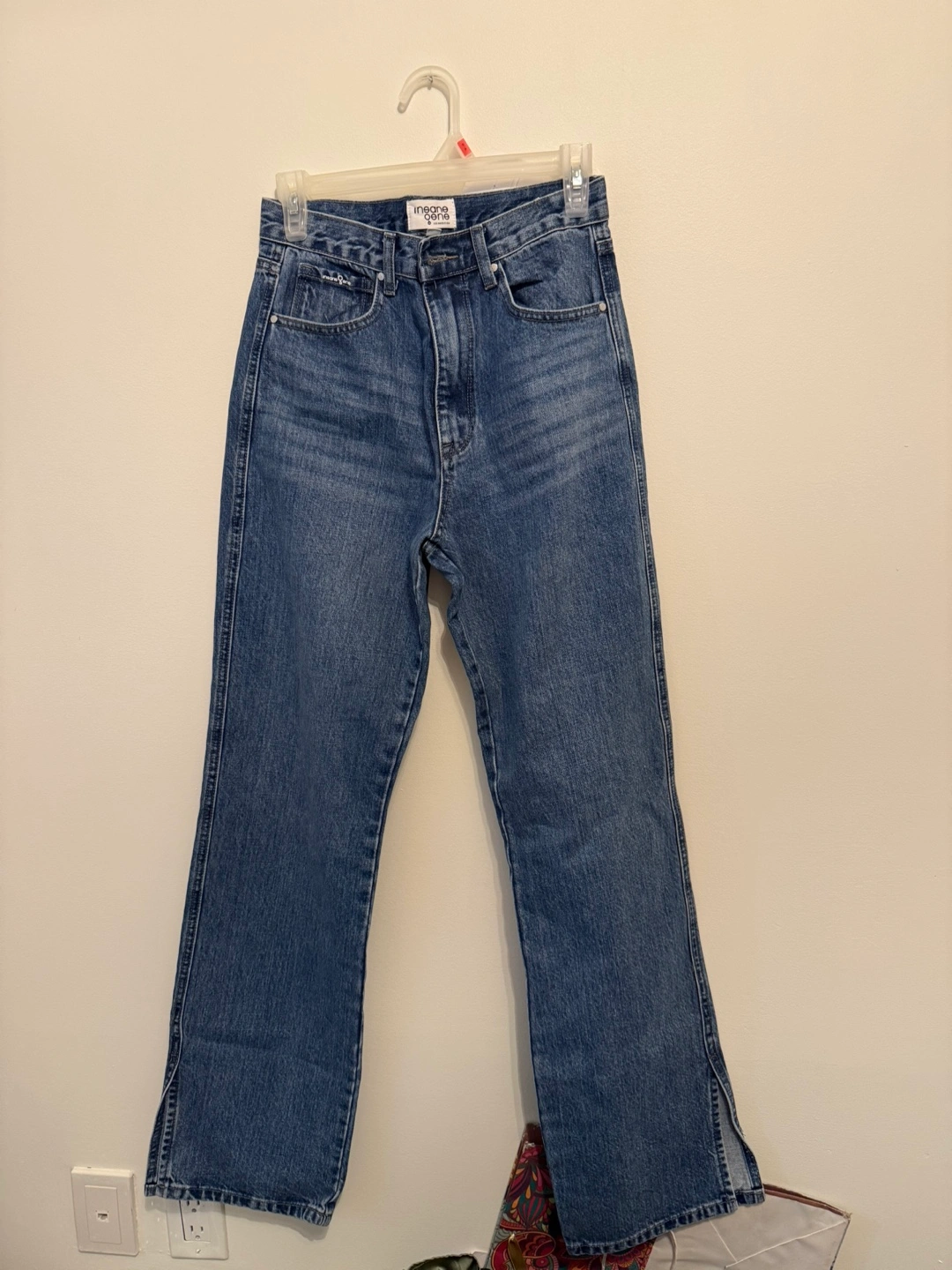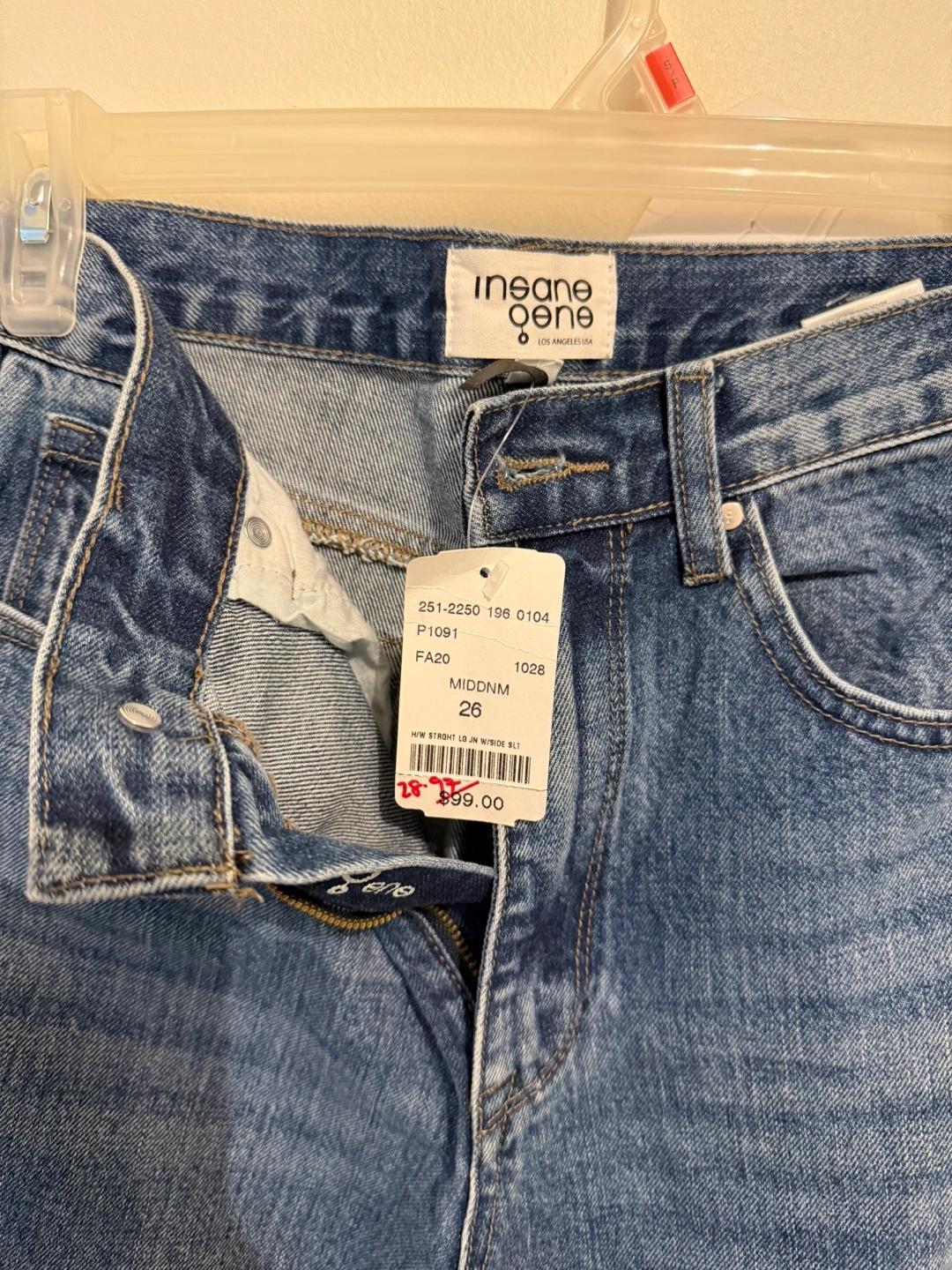 149Insane Gene jeans. Size 26. High waisted straight leg. Light wash denim. Side slits. Brand new