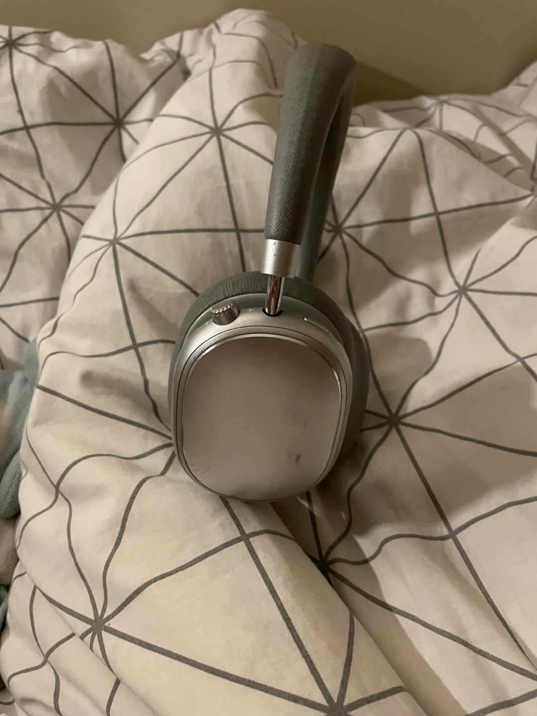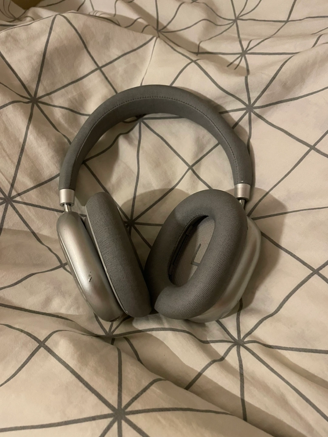 Over-ear headphones, grey and silver. Comfortable design. Good sound quality. Wireless. Open to offers!