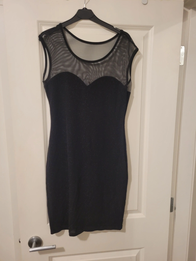Black Glitter Mini Dress with Mesh Detail