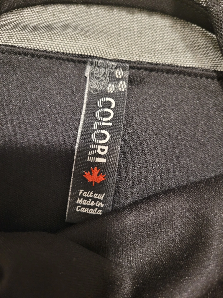 Stunning black mini dress. Features a sweetheart neckline and sheer mesh yoke. Fitted silhouette. Made in Canada.