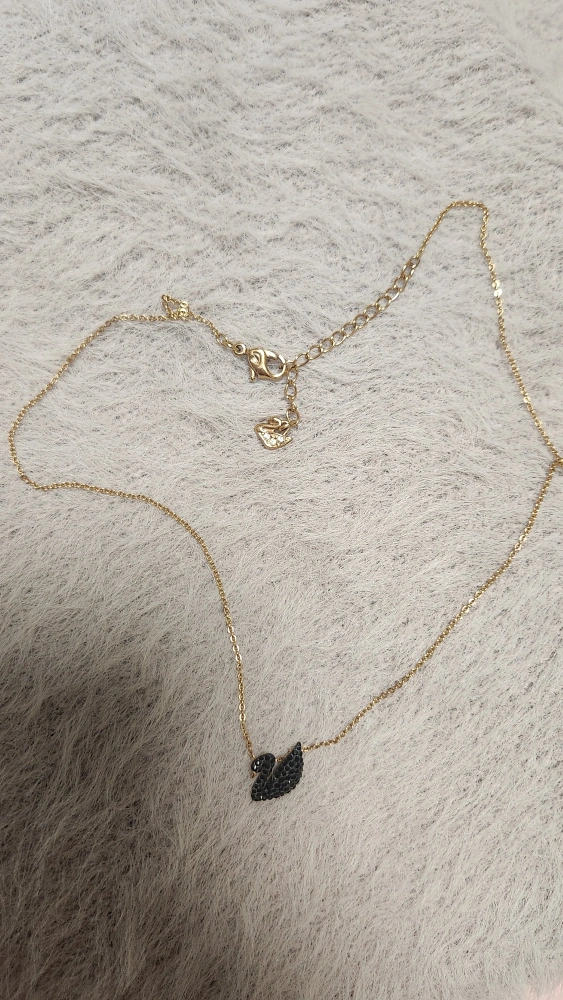 Beautiful gold-tone chain necklace. Features a small black swan pendant. Elegant and delicate. Perfect for everyday wear.