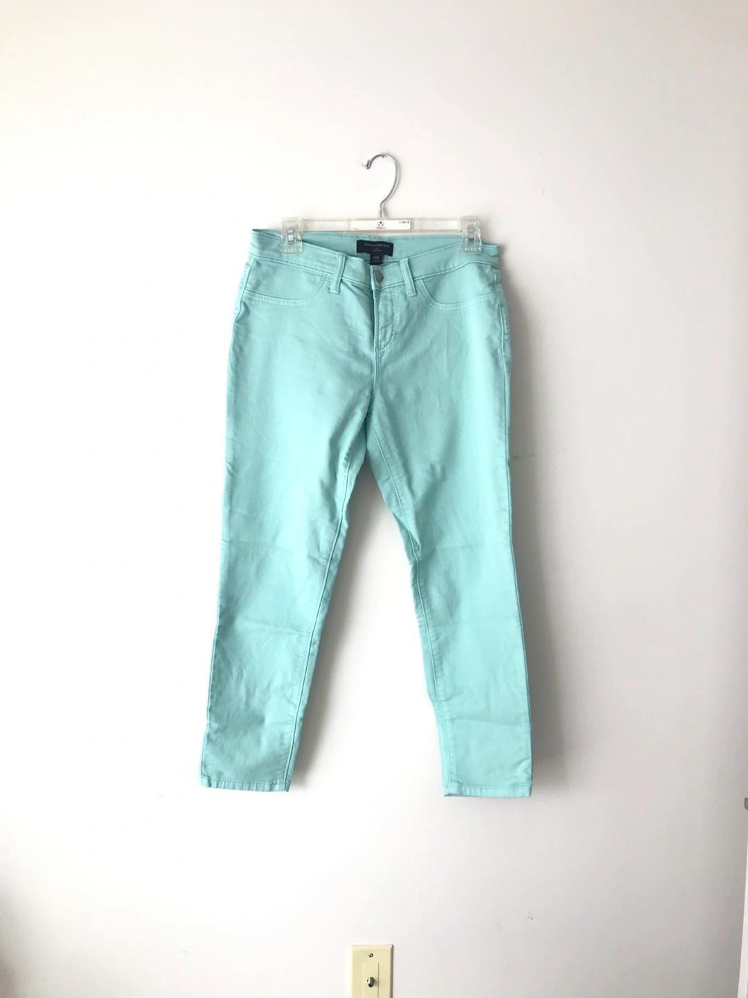 Mint green skinny jean.