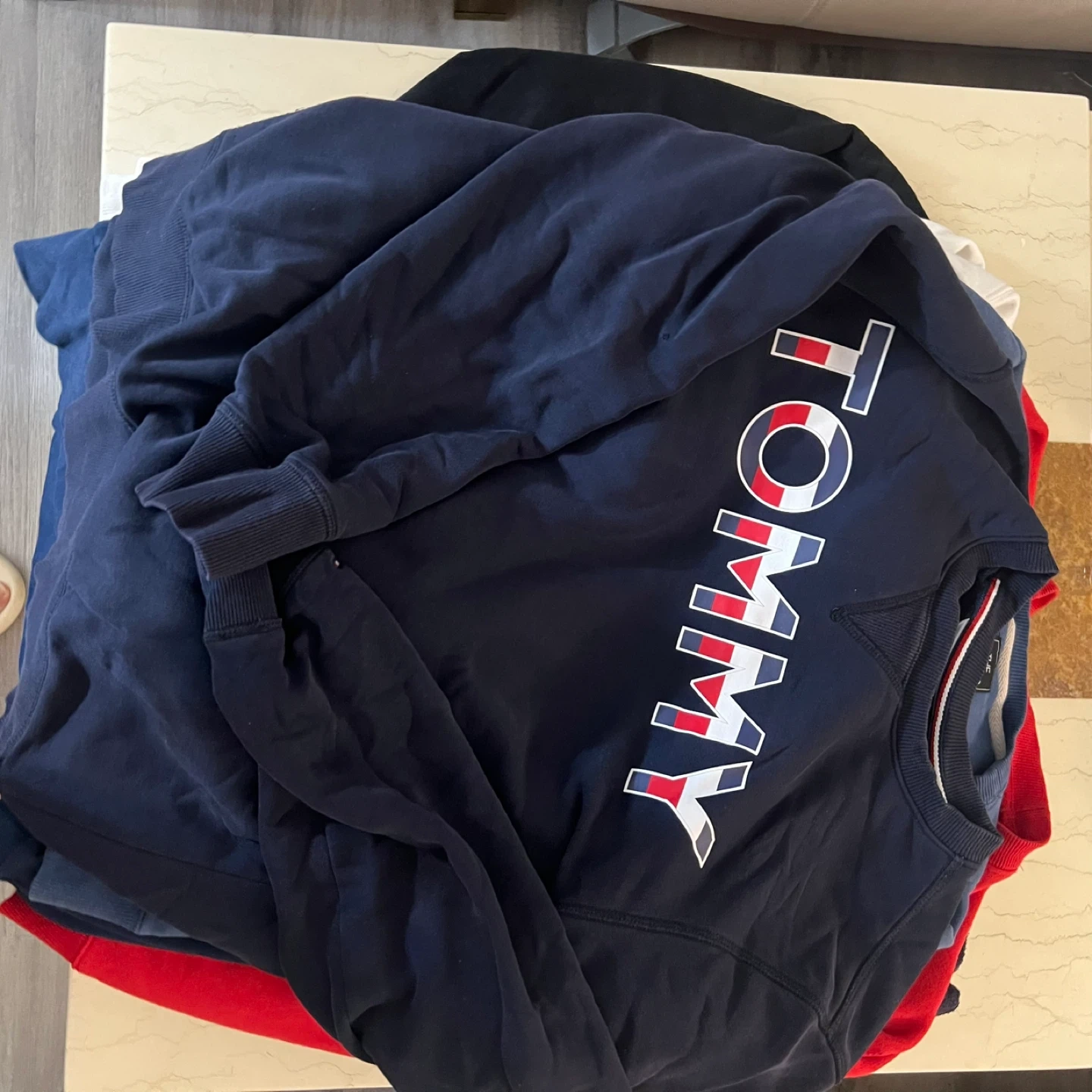 Selling 10 long-sleeve sweatshirts, fits both men and women. Sizes range from M to XL.