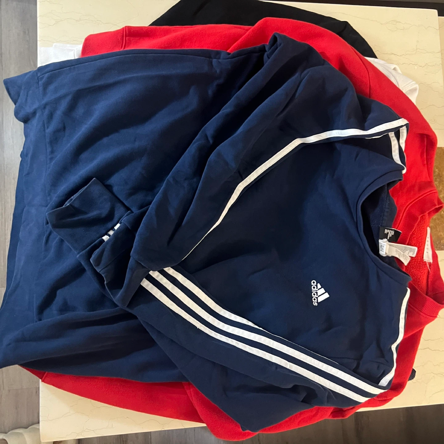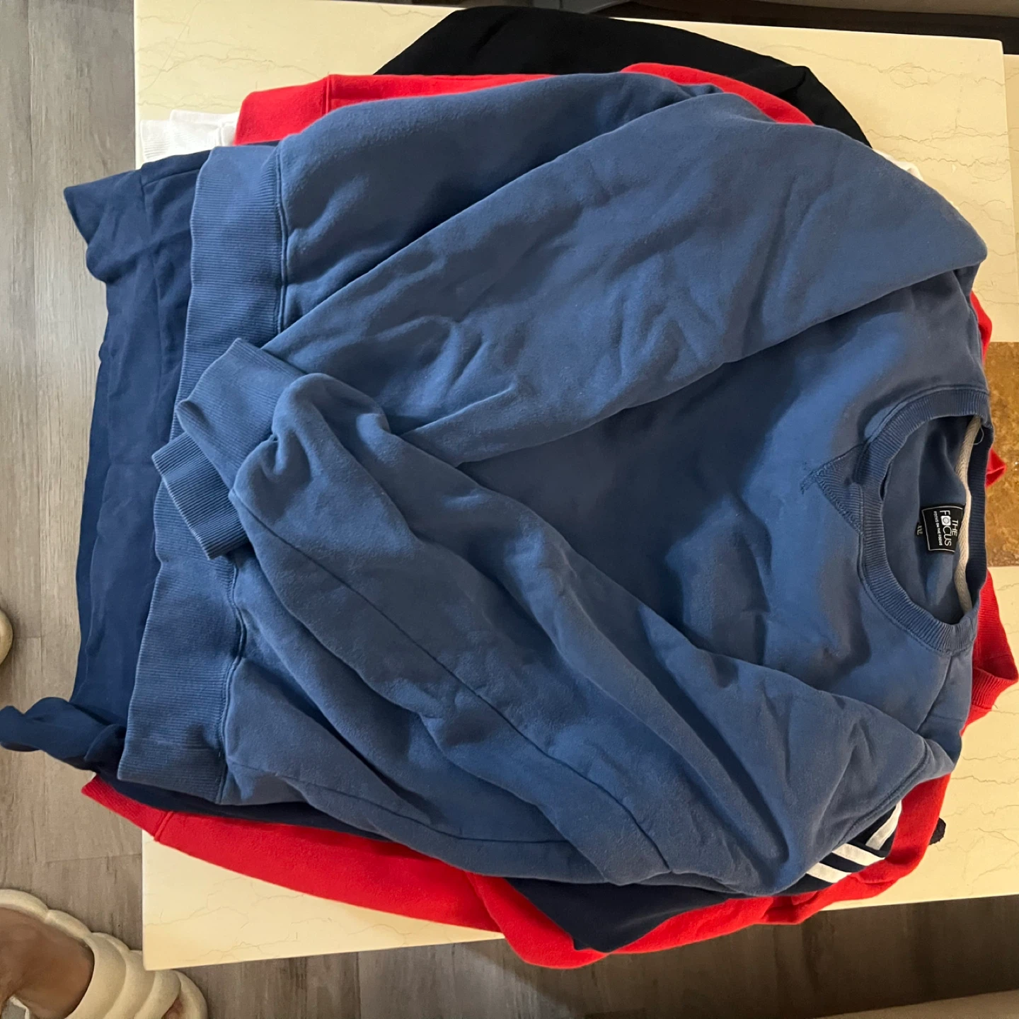 Selling 10 long-sleeve sweatshirts, fits both men and women. Sizes range from M to XL.