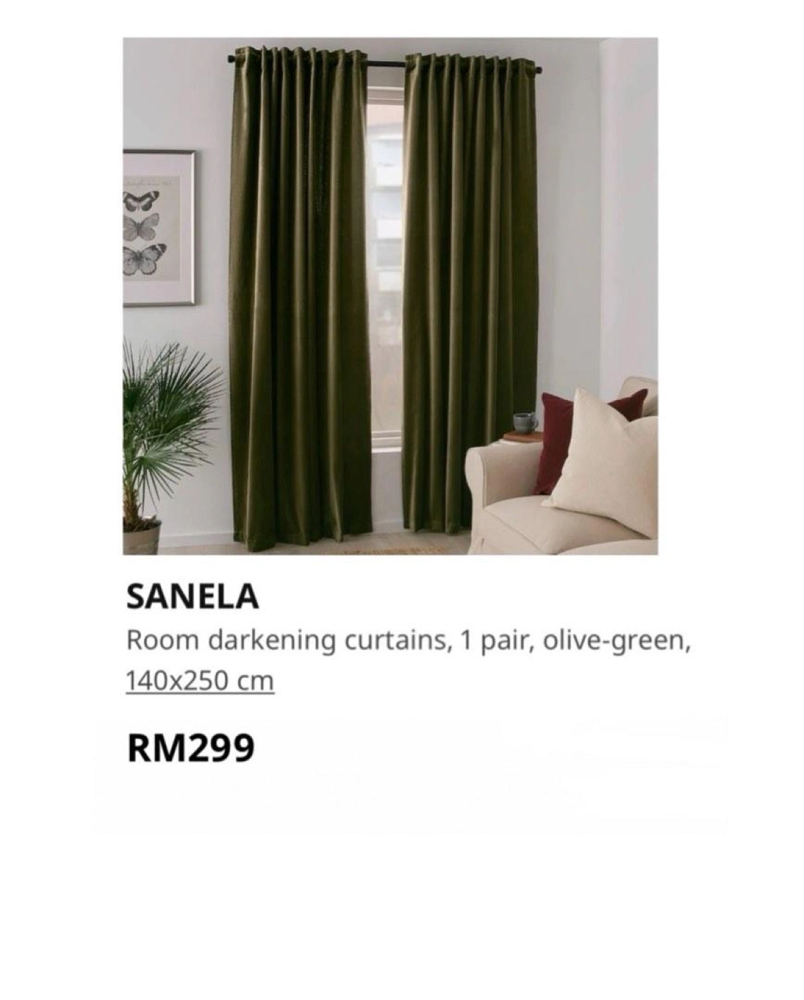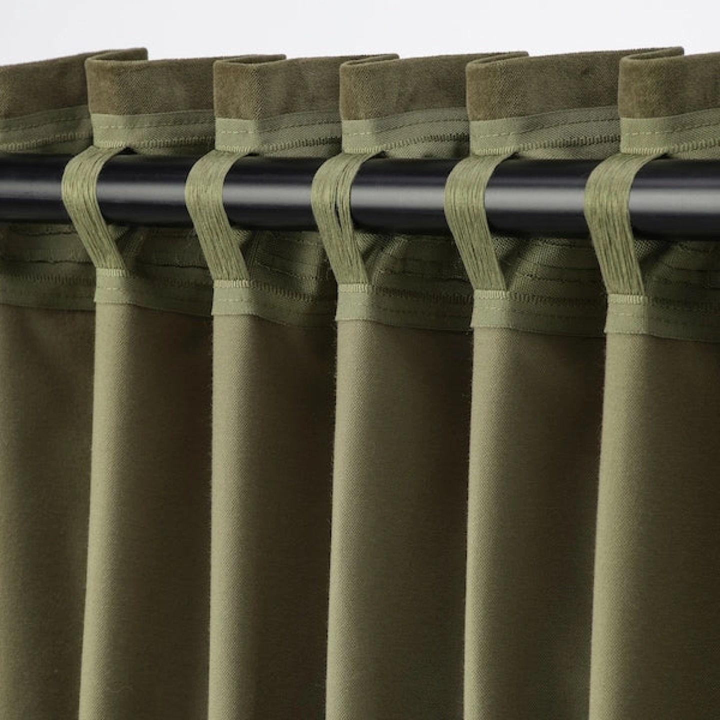 Pair of IKEA SANELA olive-green room darkening curtains. 140x250 cm. Velvet material. Really good condition.