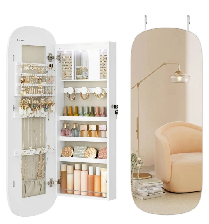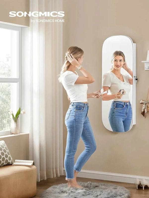 SONGMICS Over-the-Door Full-Length Mirror Jewellery Cabinet