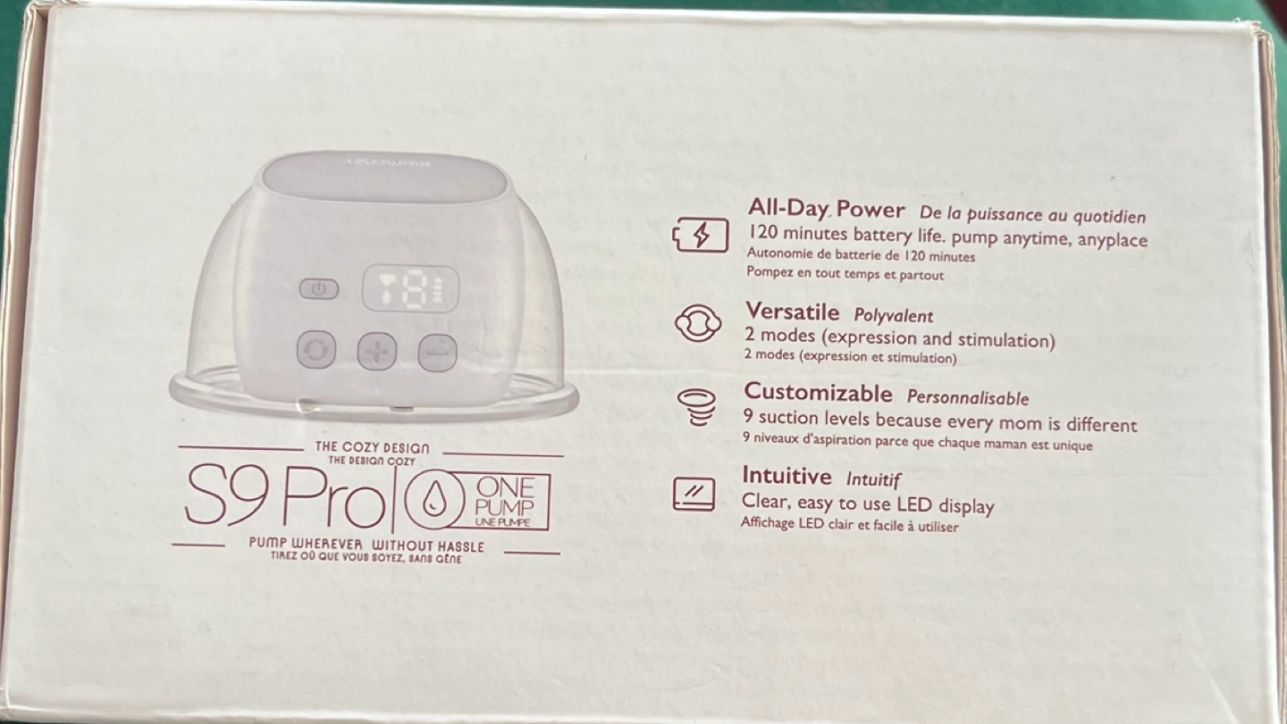 65Momcozy S9 Pro Wearable Breast Pump Original Price: $90 CAD Selling: $60 Features: • Hands-free, wearable design • 120 mins battery life • 2 pumping modes • 9 suction levels • LED display • Brand new in box Perfect for busy moms on the go!
