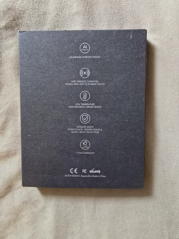 Wireless charging pad. Fast wireless charging. Works with Qi-enabled devices. Aluminium unibody design. Includes USB cable.