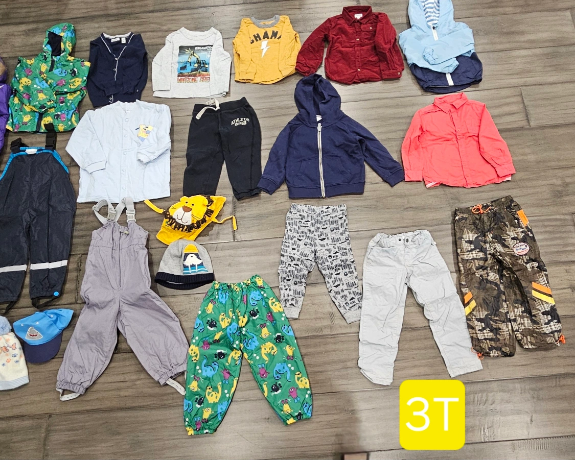 15Massive bundle of boys' 3T clothing. Includes tops, bottoms, outerwear, and accessories. Variety of styles and colours. Perfect for growing boys. Lots of different brands.