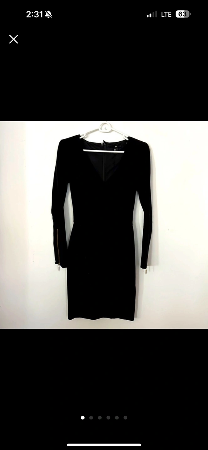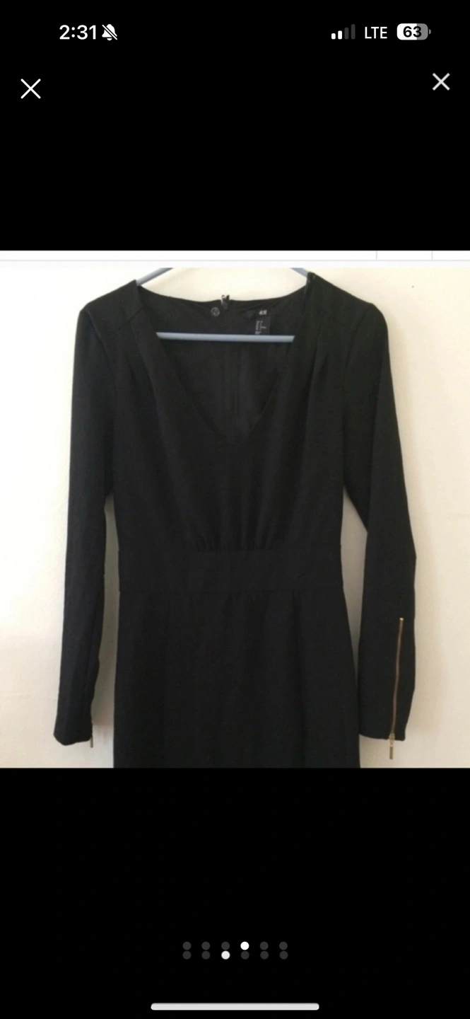 H&M Black long sleeve mini dress with gold zipper detail