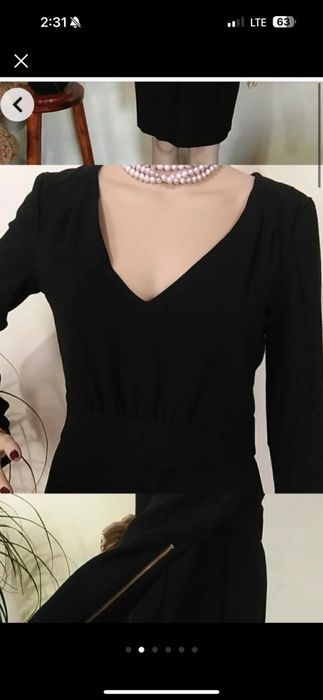Size M. V-neck. Long sleeves with gold zippers at cuffs. Fitted silhouette. Great for a night out.