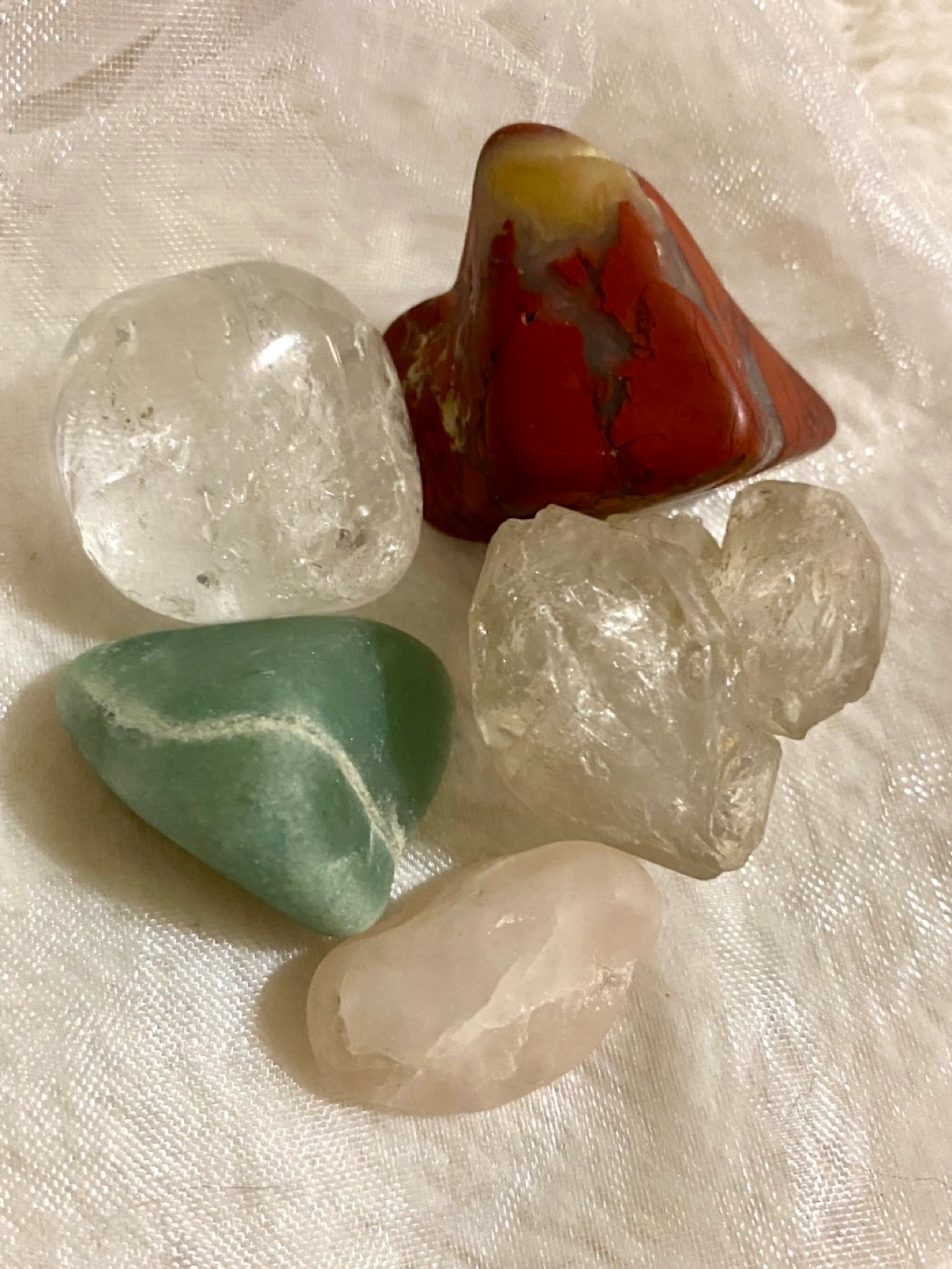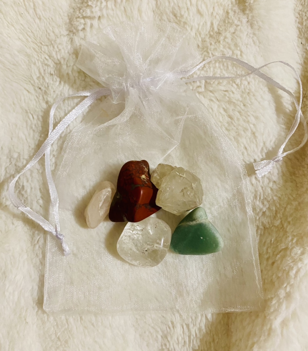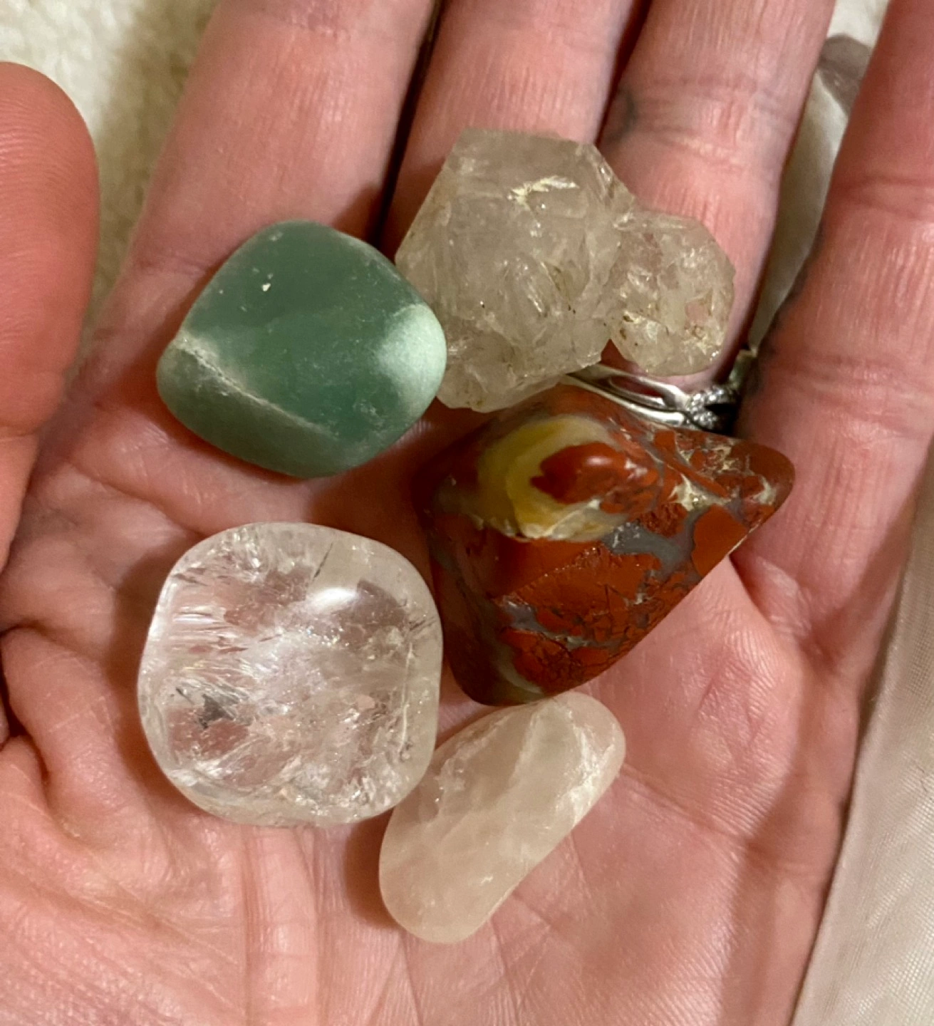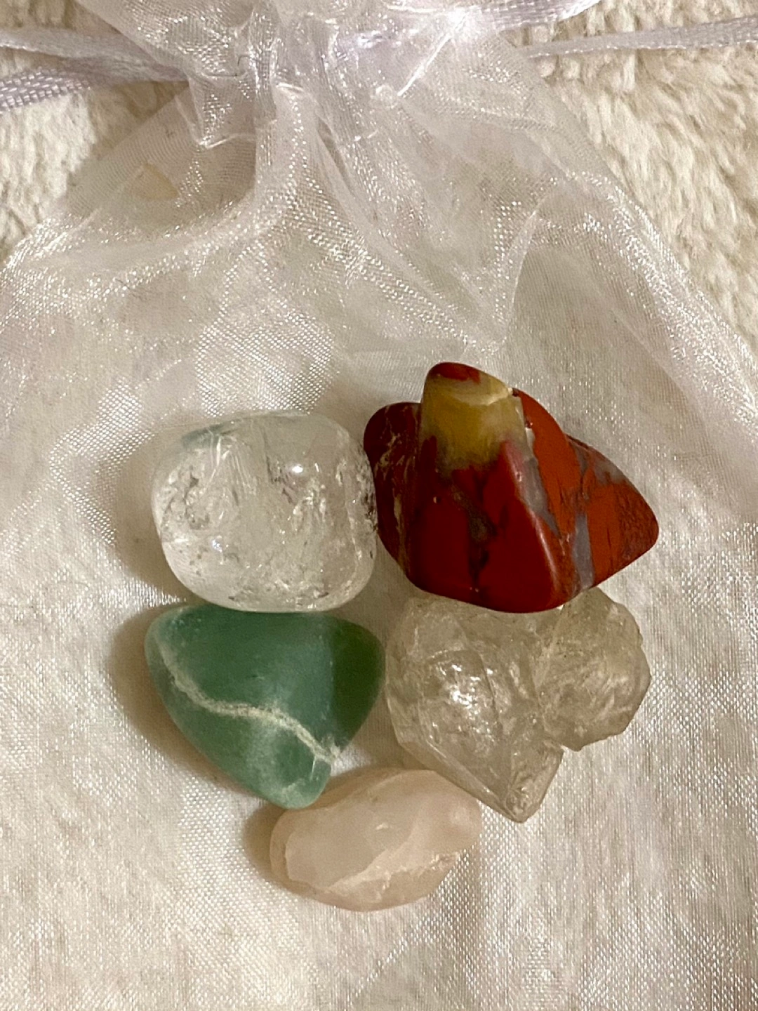 I am selling a cute healing pouch with 5 healing stones , there’s a verity of them ! All sized for carrying outside ! Palm, pocket or purse !!! These polished stunning new stones are fabulous energy!
