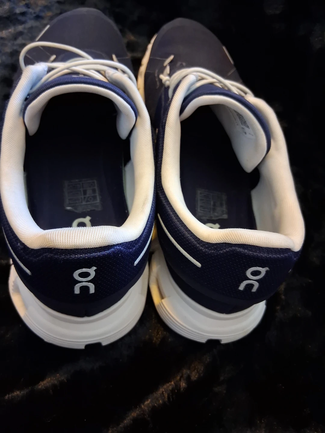 These ON Cloud running shoes are a deep navy blue with white accents. They're lightweight and designed for comfort. The sole has a unique CloudTec® cushioning system. Perfect for daily runs or casual wear!