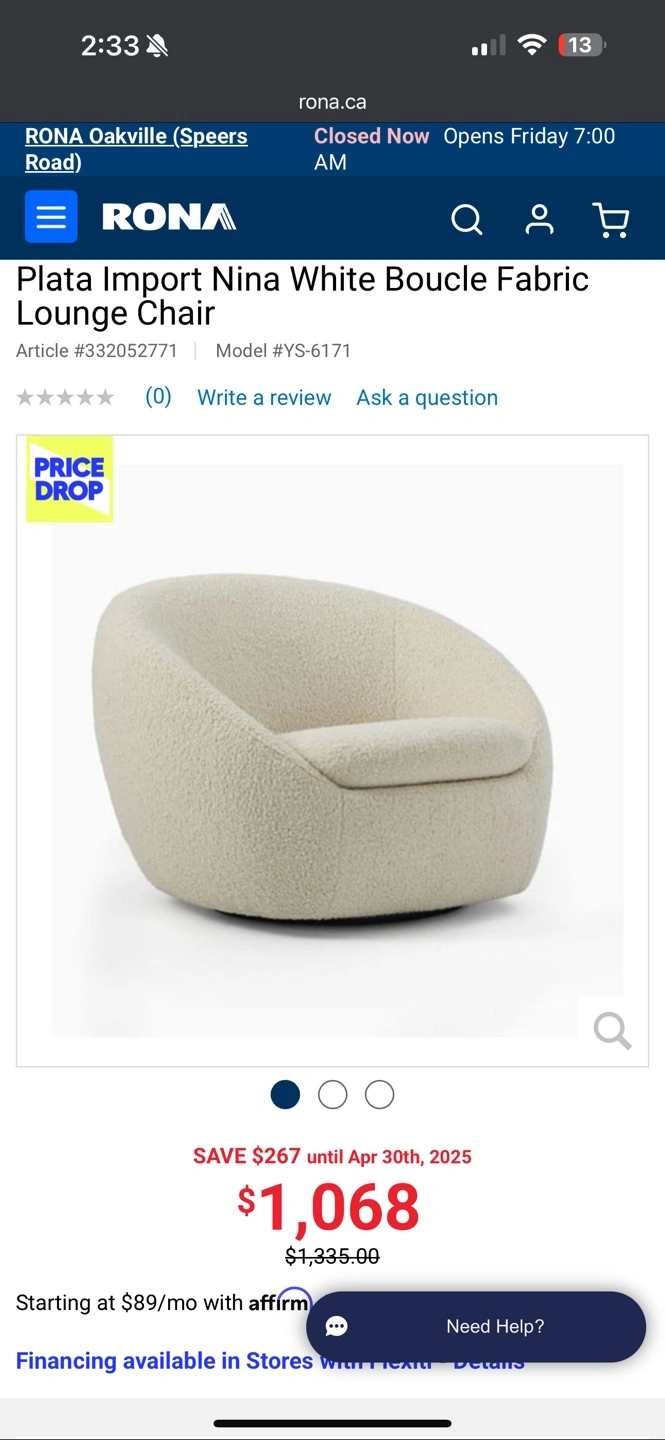 Nina White Boucle Lounge/Accent Chair