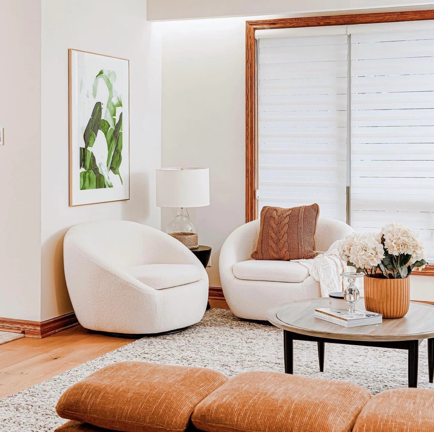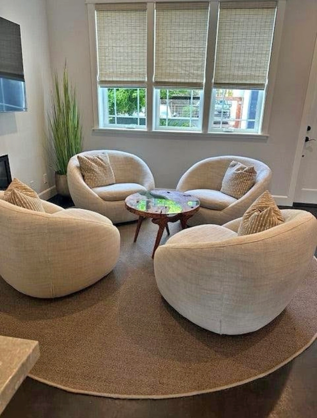 Modern swivel accent chair. Off-white boucle fabric. Excellent condition. Comfortable and stylish. Perfect for living room or bedroom. Free shipping.