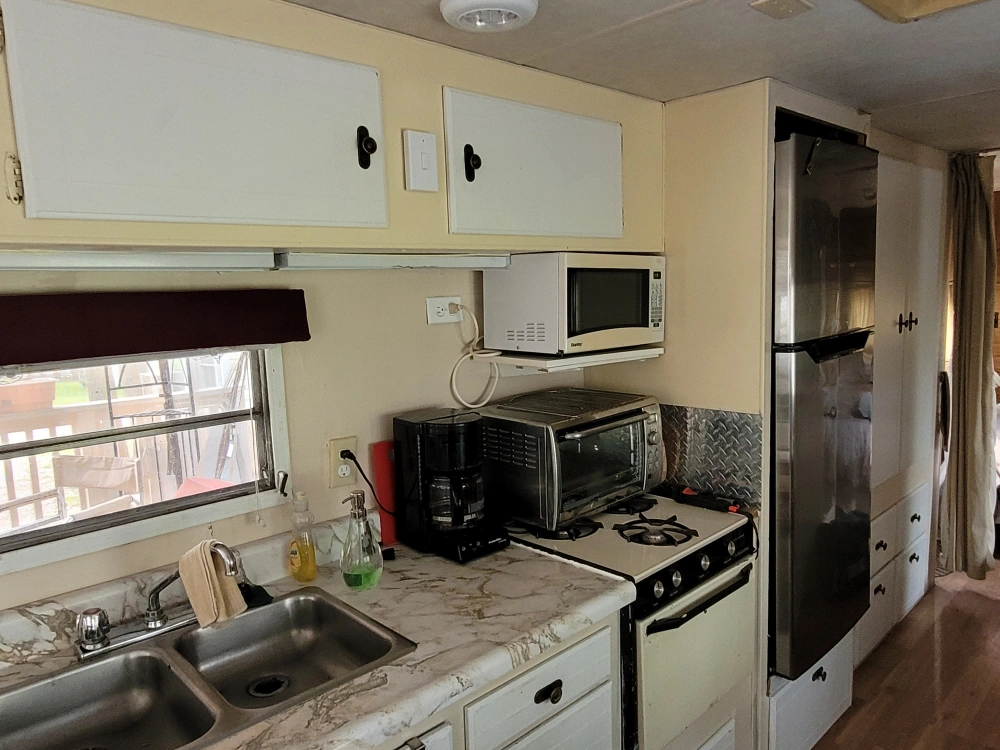 Everything works. Including large refrigerator freezer microwave toaster oven ect. Will have it removed been in park almost all life and protected from weather tires are protected from weather and sun so should be ok BEST OFFER