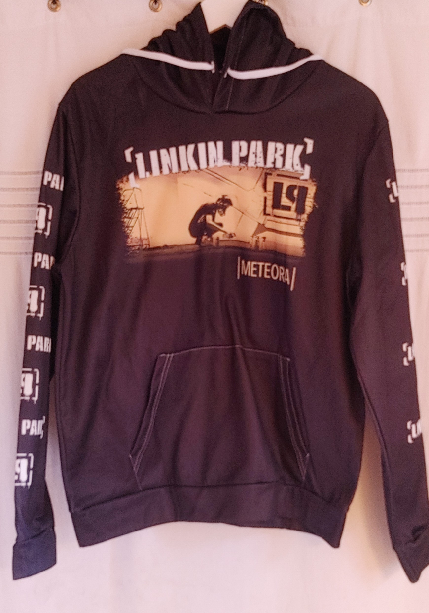 Mens Linkin Park size medium hoodie featuring the Meteora album cover and logo. Graphic image of band on the back and graphic on both sleeves. Has pull strings on hood and front hand kangaroo pocket. Excellent condition. No rips or stains. Smoke free home pick up Mt.Brydges cash only.