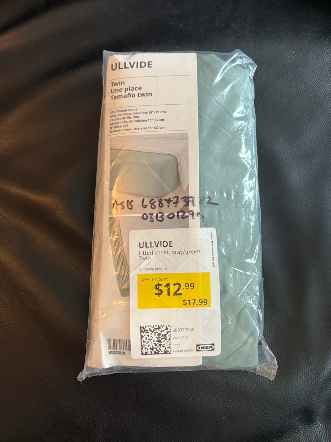 New IKEA ULLVIDE fitted sheet. Twin size. Gray/green colour. 200 thread count.