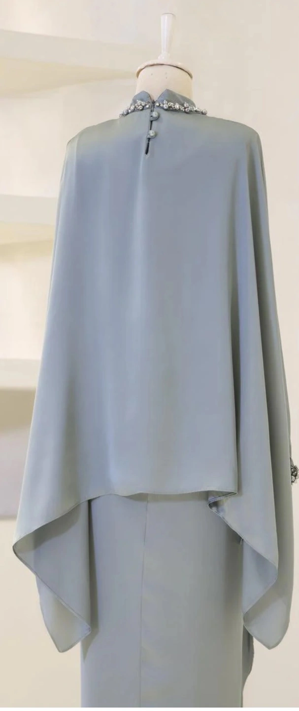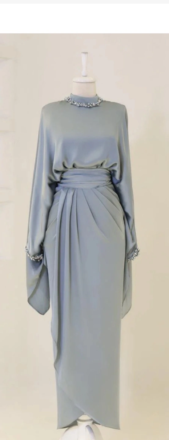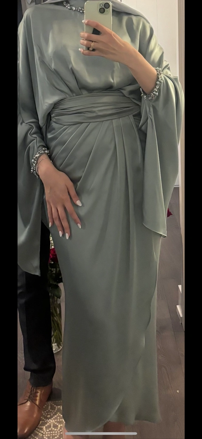 Beautiful dark turquoise color dress. Long sleeves and floor-length. Perfect for special occasions.