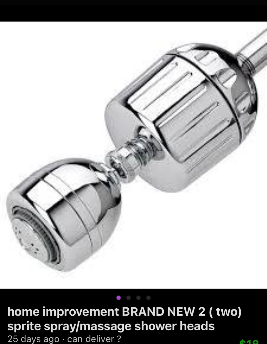 2- Two brand new chrome shower heads. Sprite brand. Massage and spray functions. Home improvement.