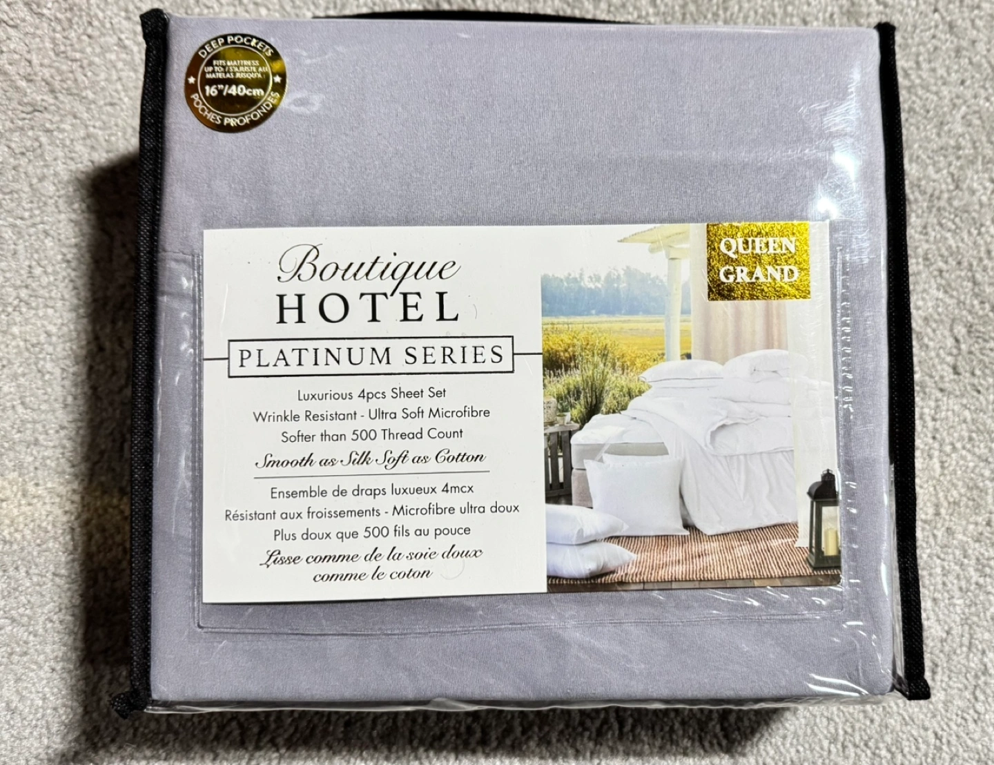 Brand new queen-size sheet sets. Grey microfibre. Includes fitted sheet, flat sheet, and two pillowcases. Soft and wrinkle-resistant. Deep pockets. Downsizing. Pickup in Heritage park area, near Grace Hospital. Price $25 each set.