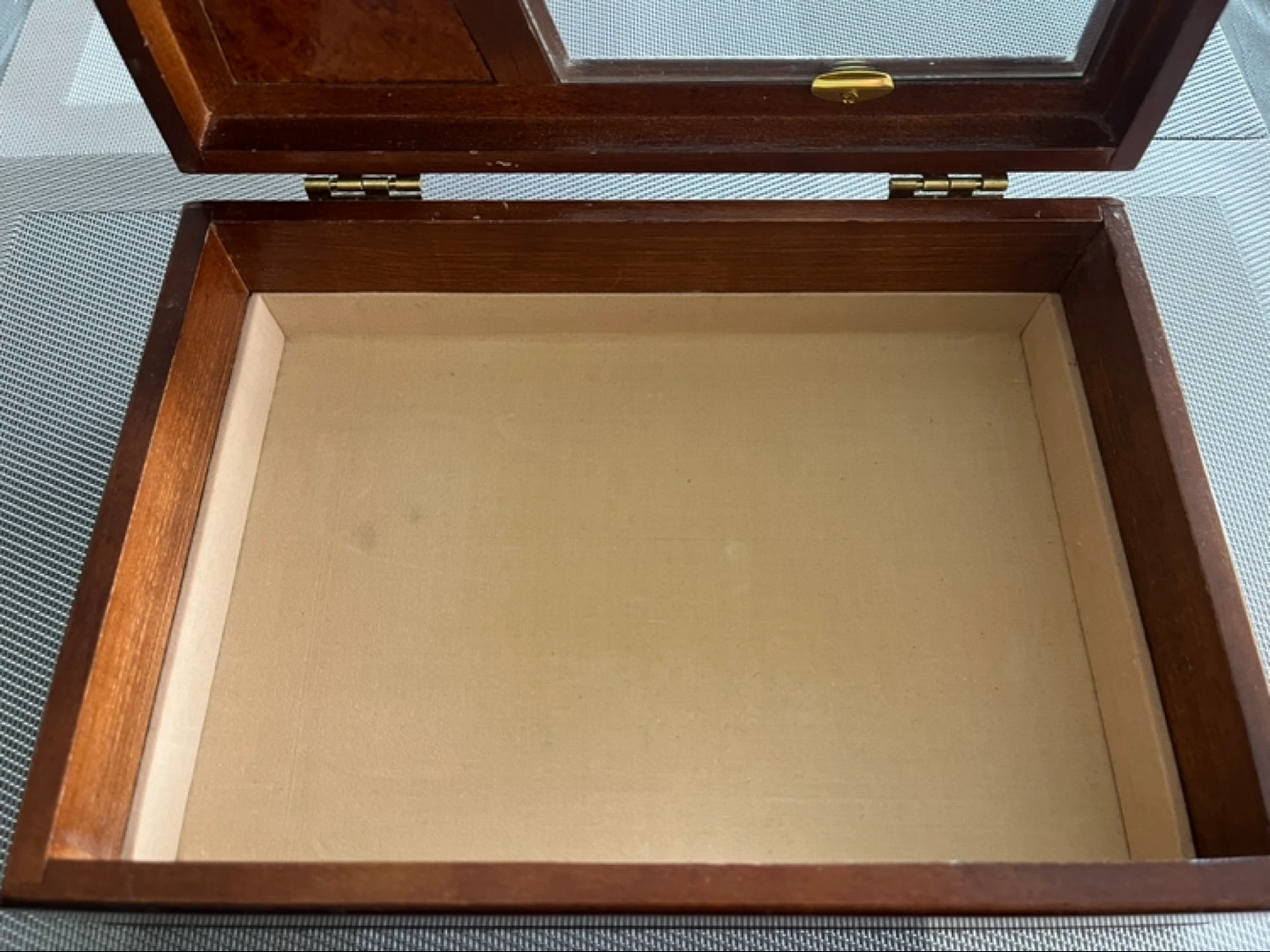 Reduced-Vintage Wooden Jewellery Box with Glass Top