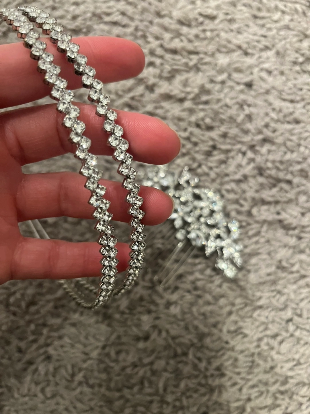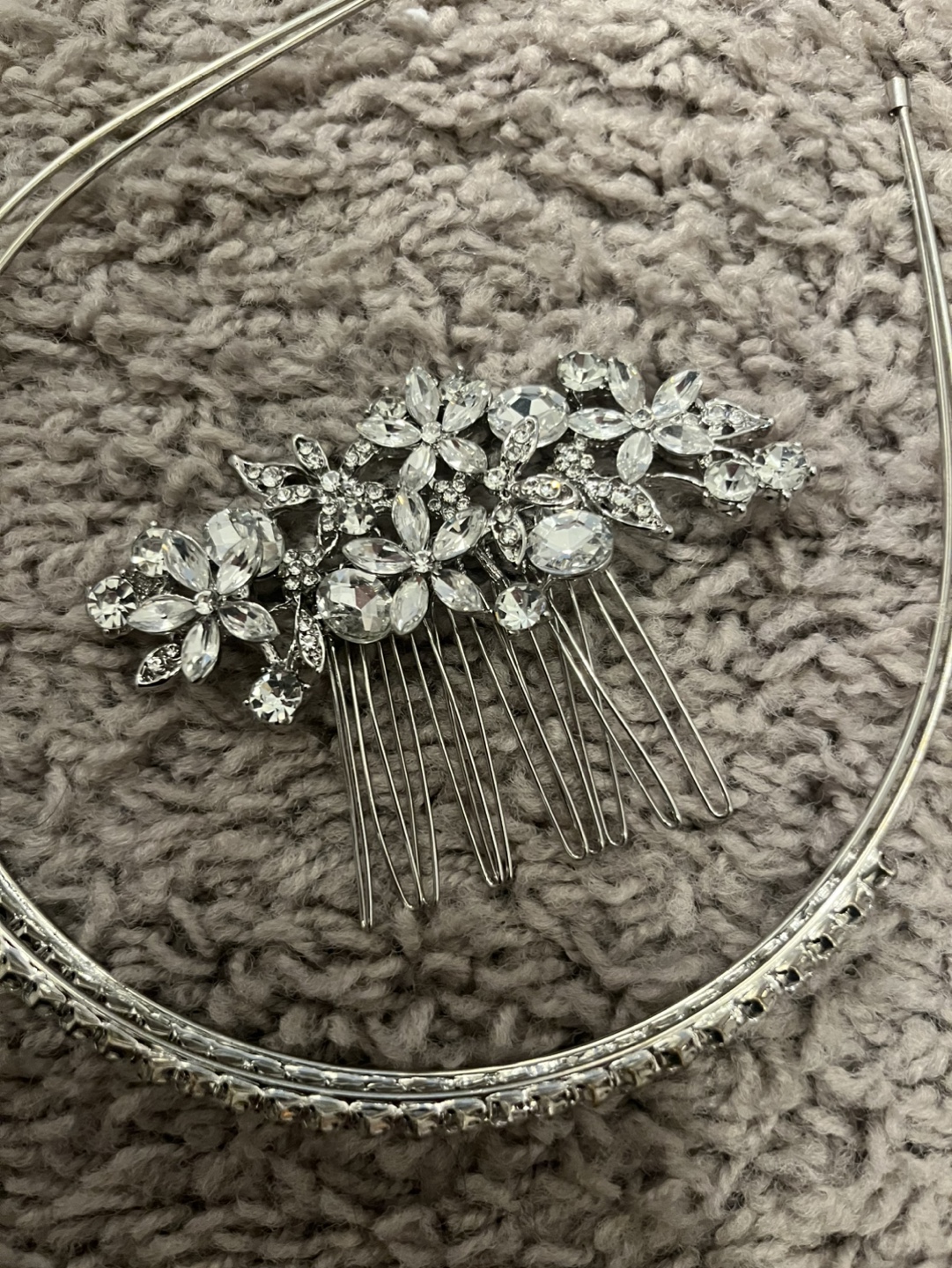 Gorgeous silver headband and hair comb set. Features clear rhinestones. Perfect for weddings or special occasions. Excellent condition.