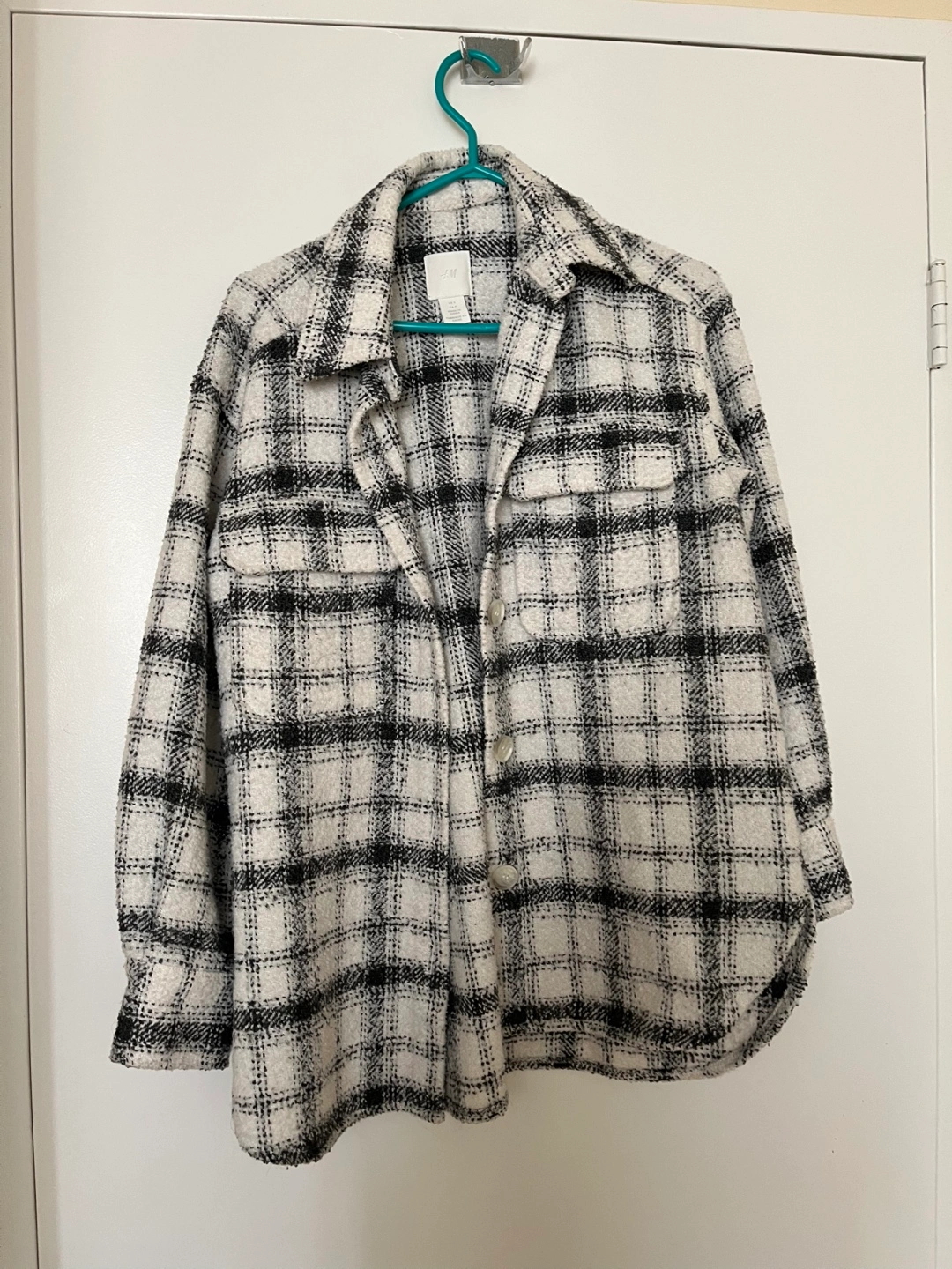 H&M Black and White Checked Oversized Jacket