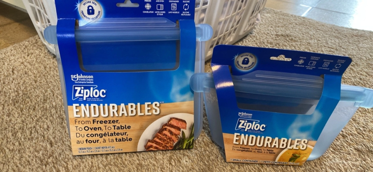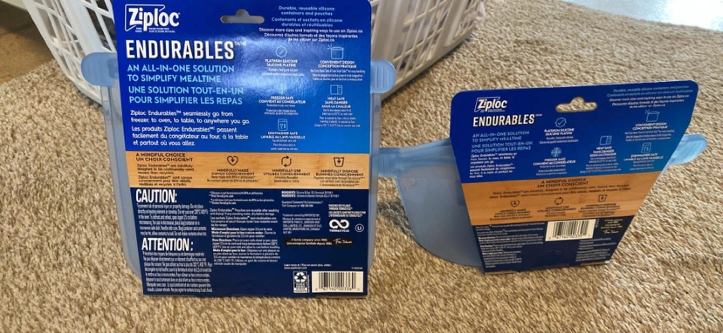 57Two Ziploc Endurables food containers. Freezer, oven, and microwave safe. Go from freezer to table. Reusable and durable. Great for meal prep. Porch pick up. Cash only. $5 each.