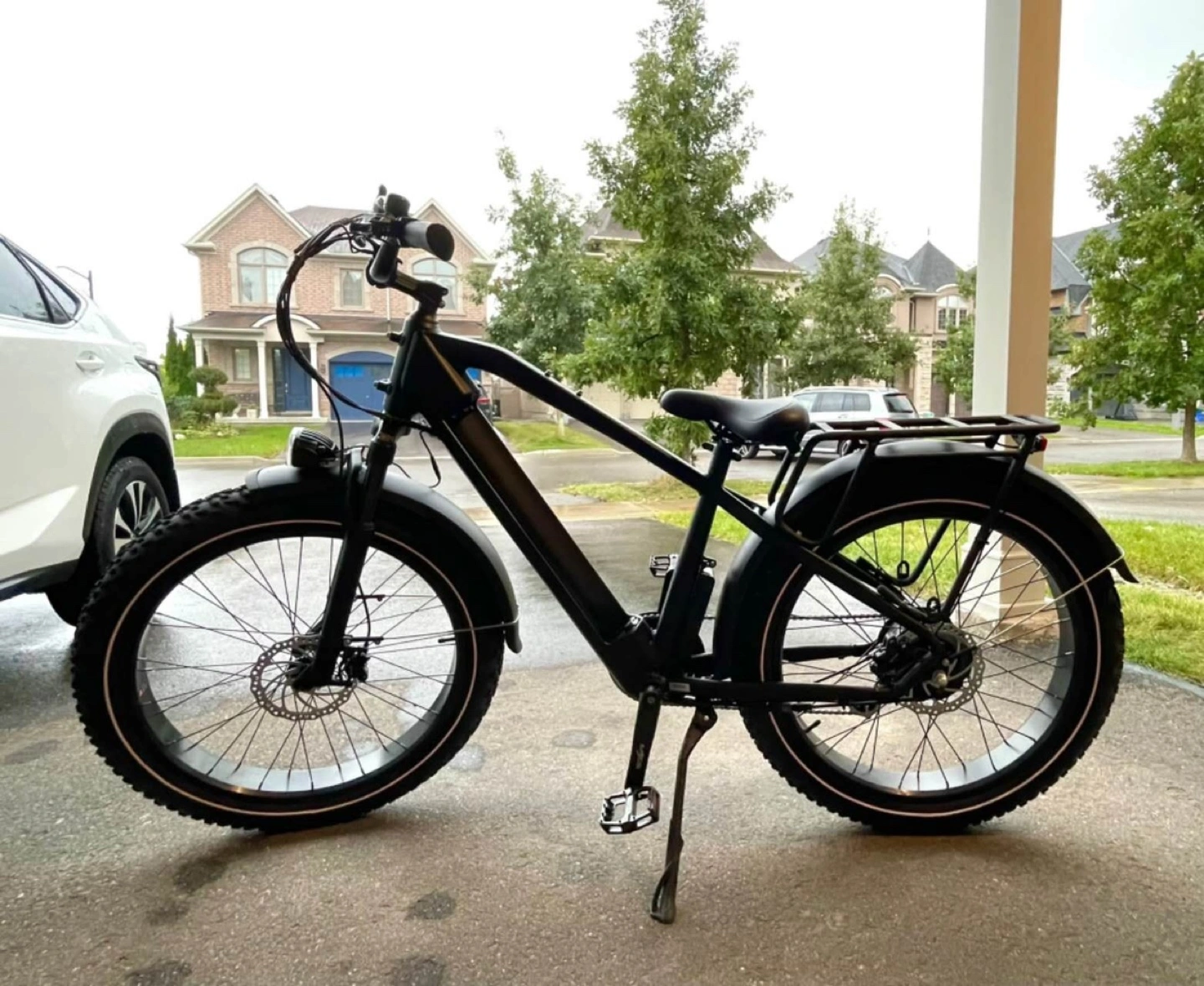 New electric bike, never ridden. Black frame. Fat tyres. Rear carrier. Ready to ride. Box included.