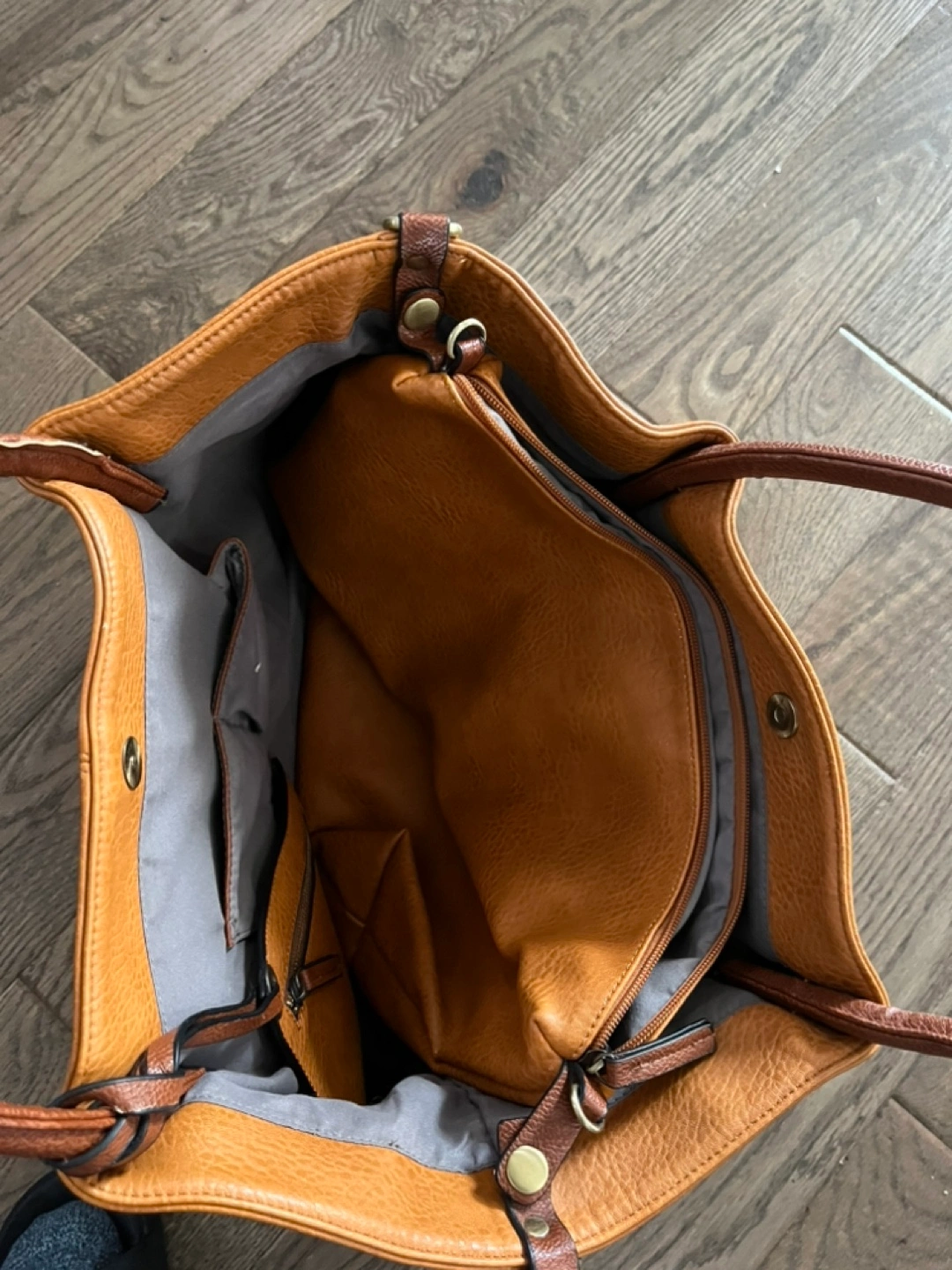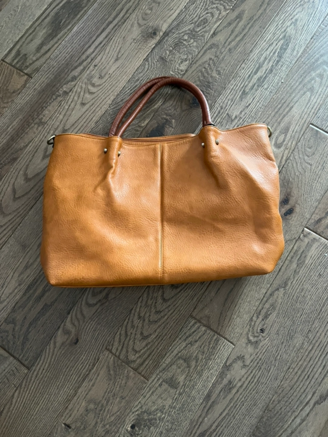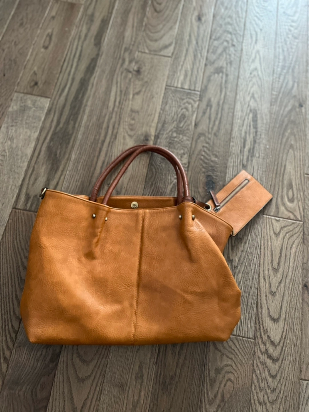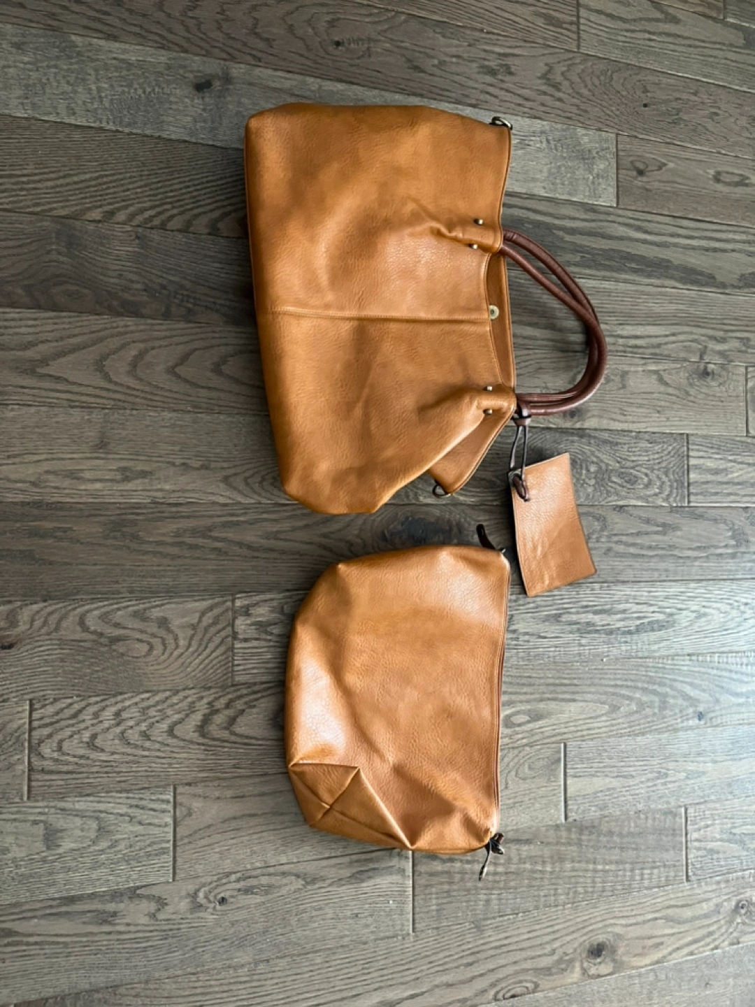 Tan Leather Tote Bag with Matching Pouch & Purse