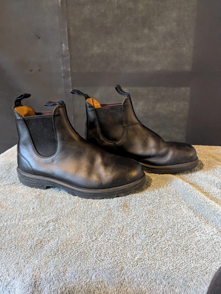 Worn 1 summer. Pair of black leather Blundstone boots. Classic Chelsea style. Near perfect condition. Durable soles.