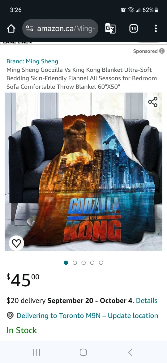 New and unopened ultra-soft flannel blanket. Features Godzilla vs King Kong imagery. Perfect for all seasons. Measures 60"x50". Suitable for bedroom or sofa.
