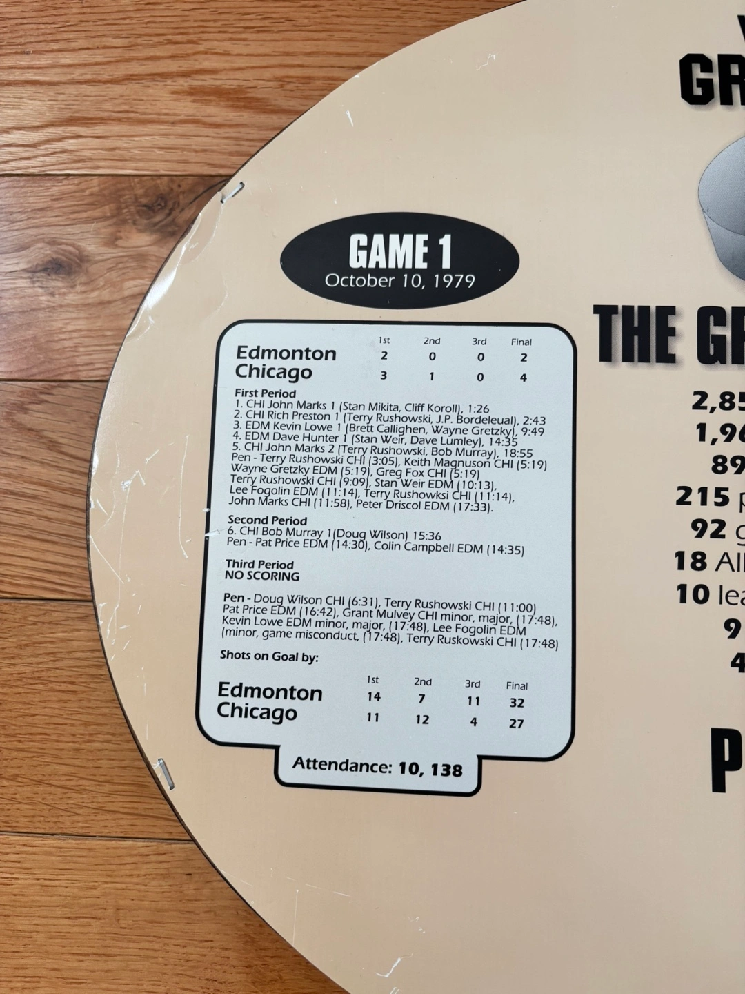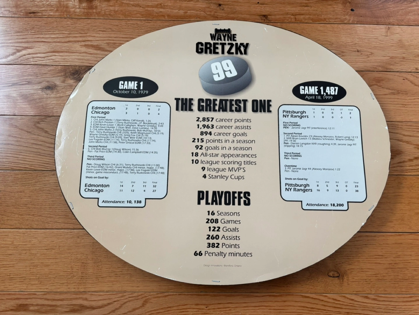 Kim Murray 99. in excellent condition.metal plate says "99 The Great One"..approx. 20" x16.5" oval..